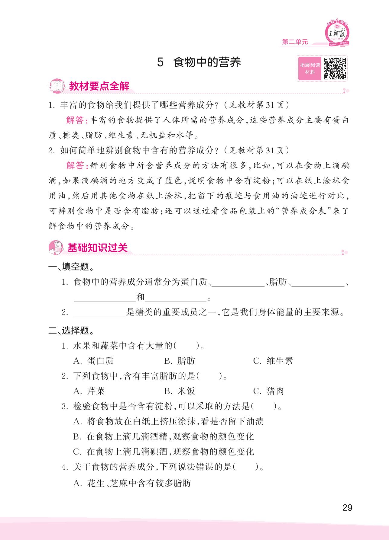 2023上册四年级科学教科版 第二单元 呼吸与消化——5 食物中的营养