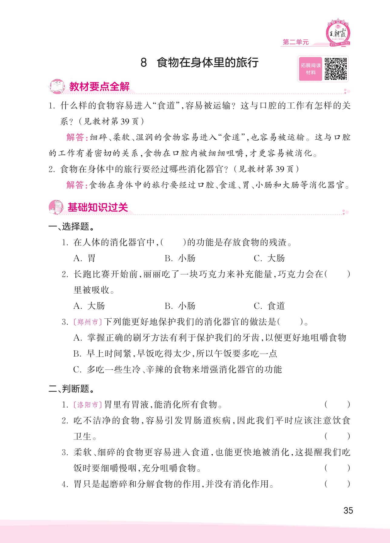 2023上册四年级科学教科版 第二单元 呼吸与消化——8 食物在身体里的旅行