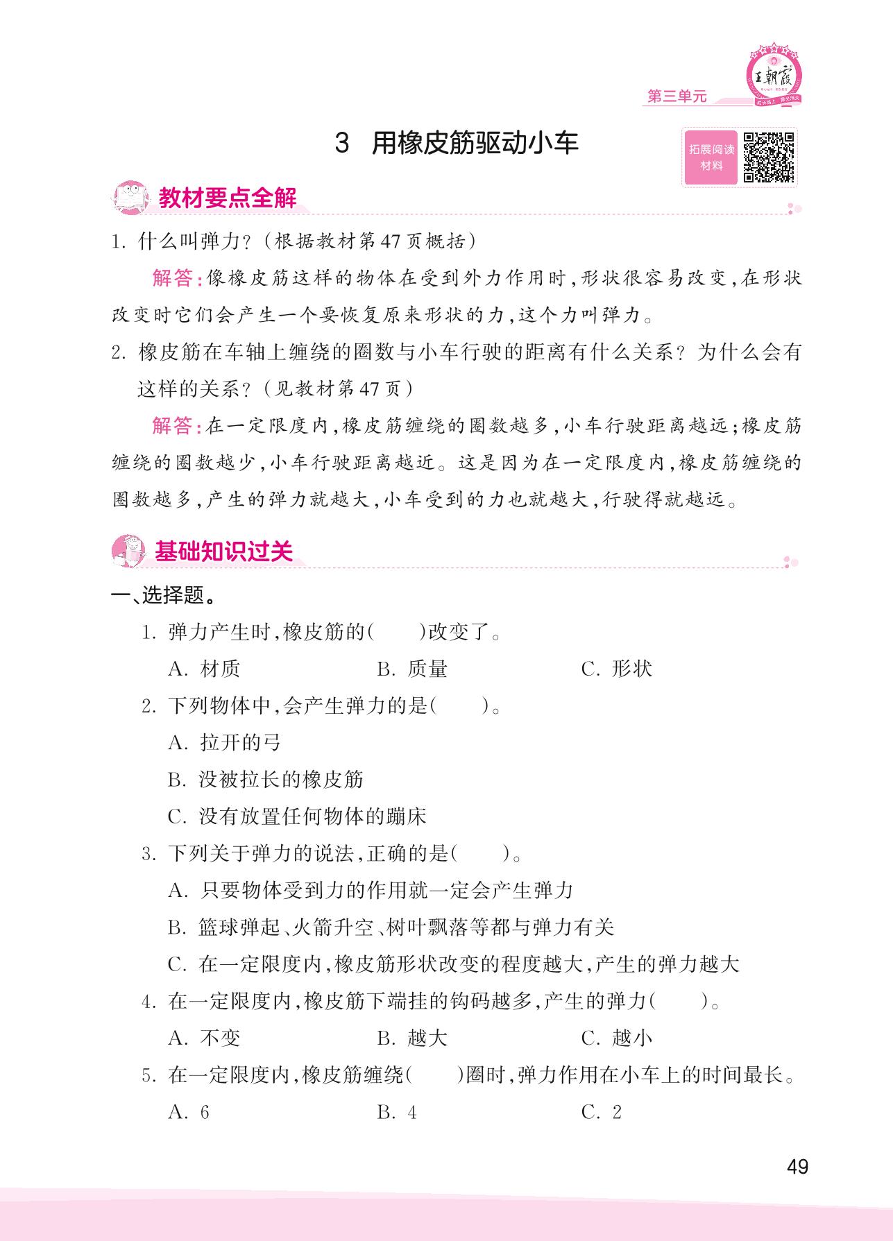 2023上册四年级科学教科版 第三单元 运动和力——3 用橡皮筋驱动小车
