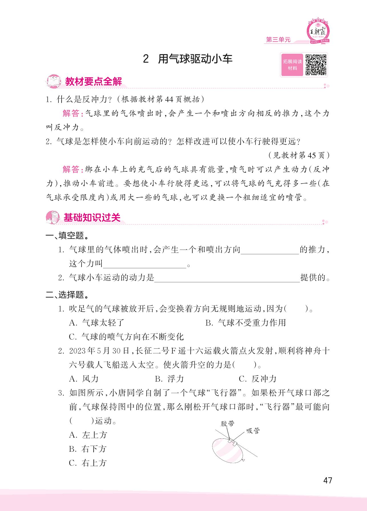 2023上册四年级科学教科版 第三单元 运动和力——2 用气球驱动小车