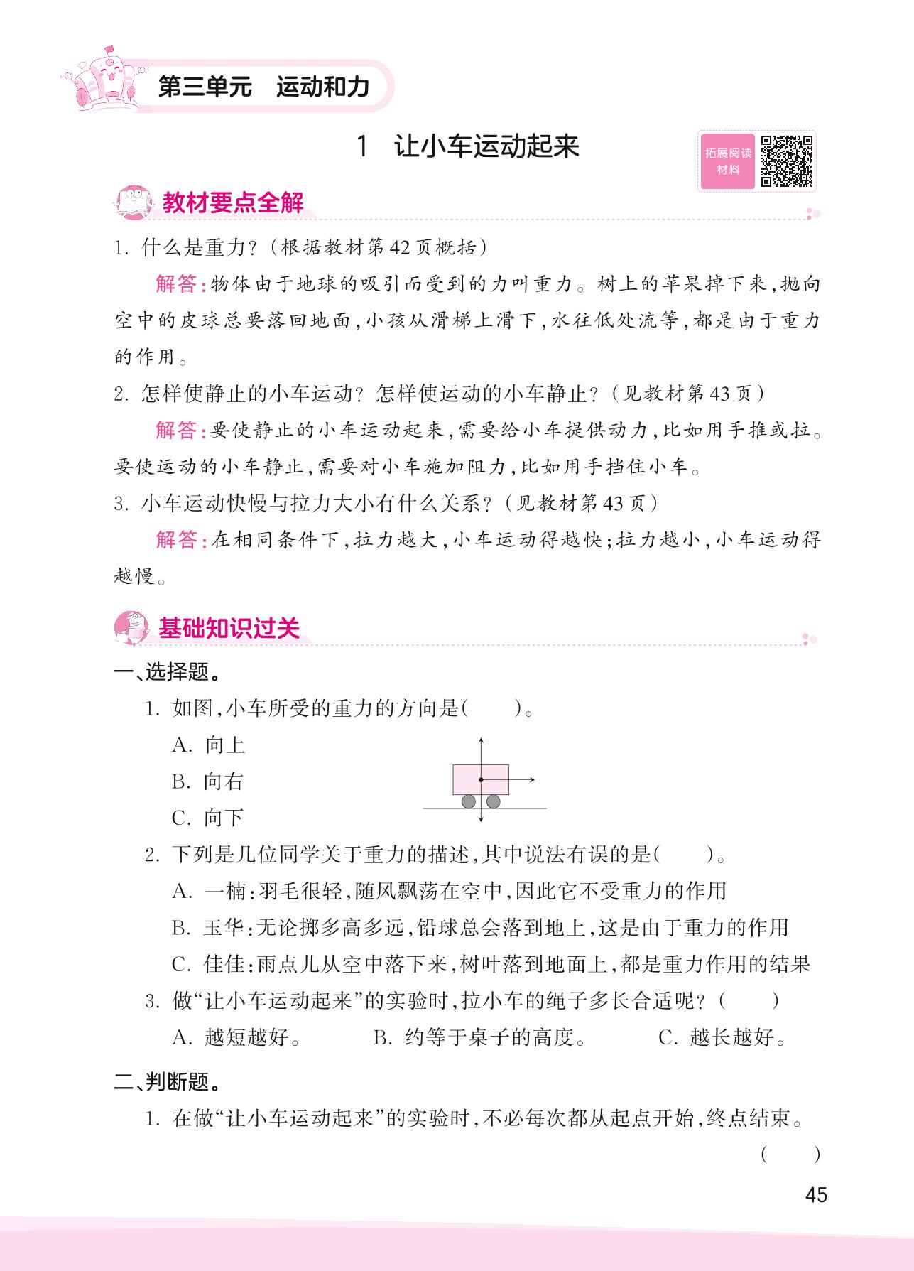 2023上册四年级科学教科版 第三单元 运动和力——1 让小车运动起来