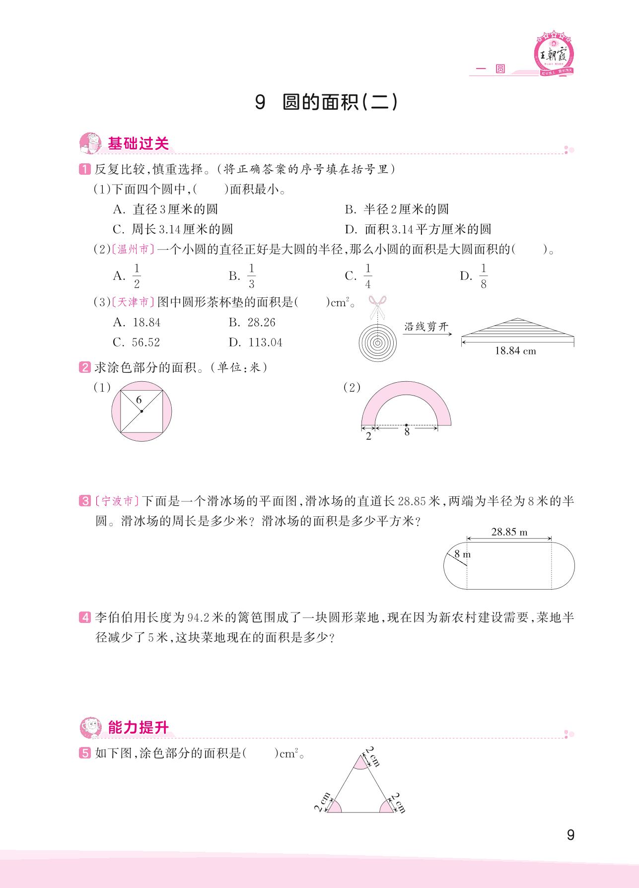 2023上册六年级数学北师版 一 圆——9 圆的面积(二)