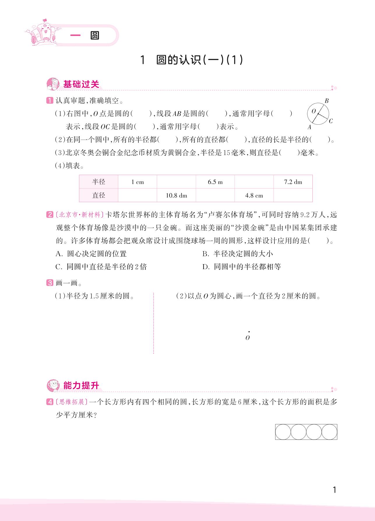 2023上册六年级数学北师版 一 圆——1 圆的认识(一)(1)