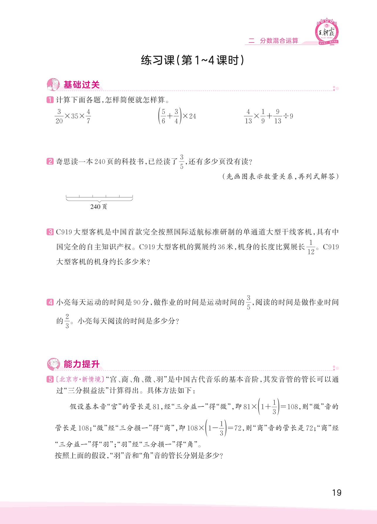 2023上册六年级数学北师版 二 分数混合运算——练习课(第1~4课时)