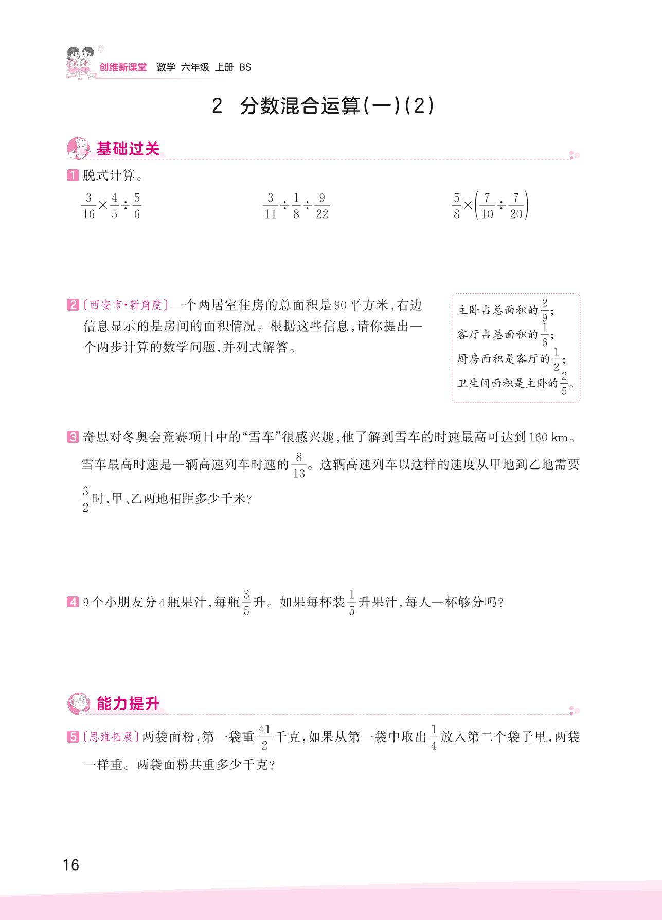 2023上册六年级数学北师版 二 分数混合运算——2 分数混合运算(一)(2)