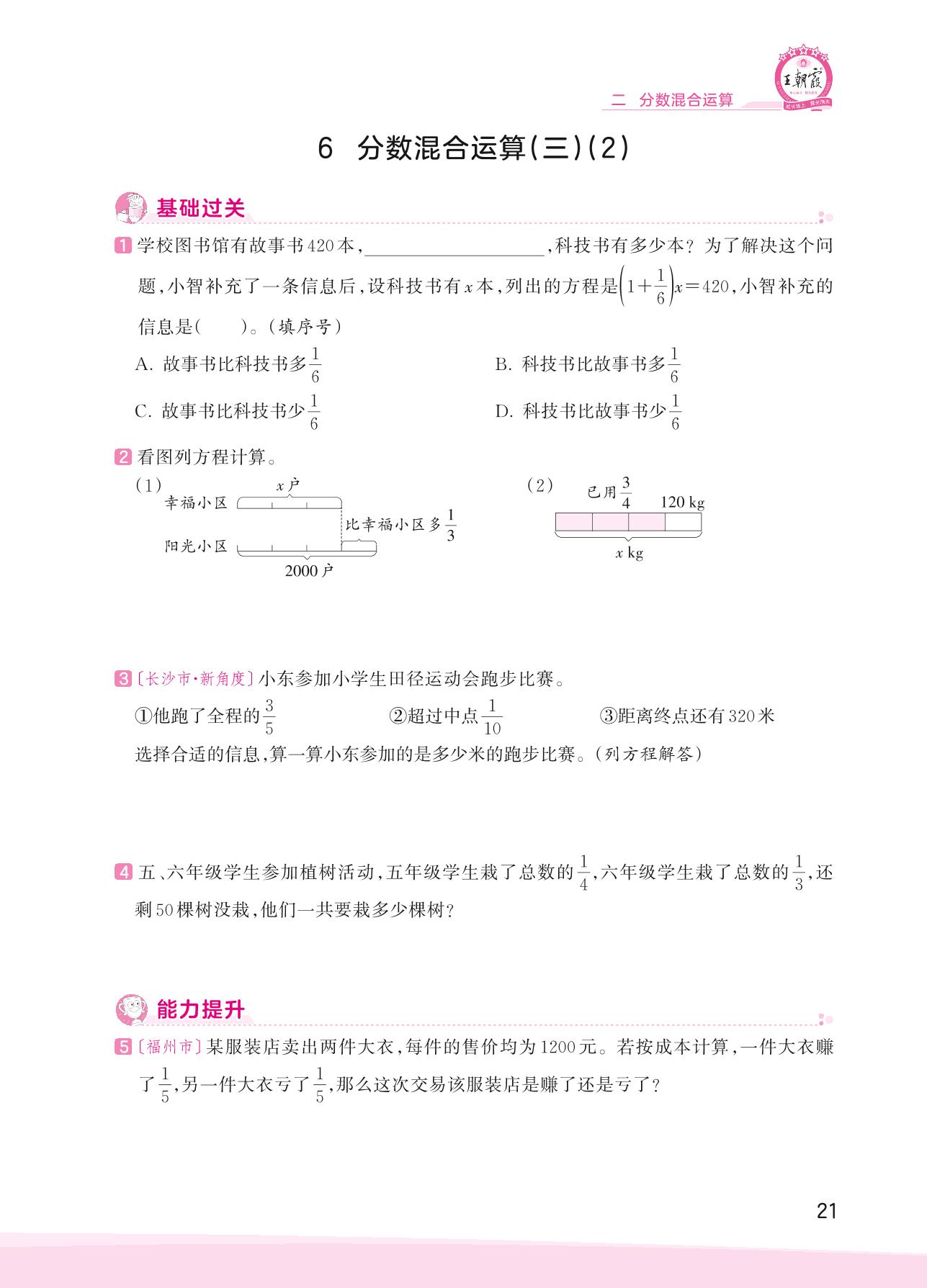 2023上册六年级数学北师版 二 分数混合运算——6 分数混合运算(三)(2)