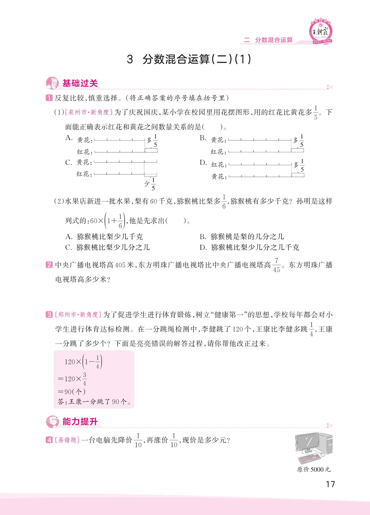 2023上册六年级数学北师版 二 分数混合运算——3 分数混合运算(二)(1)