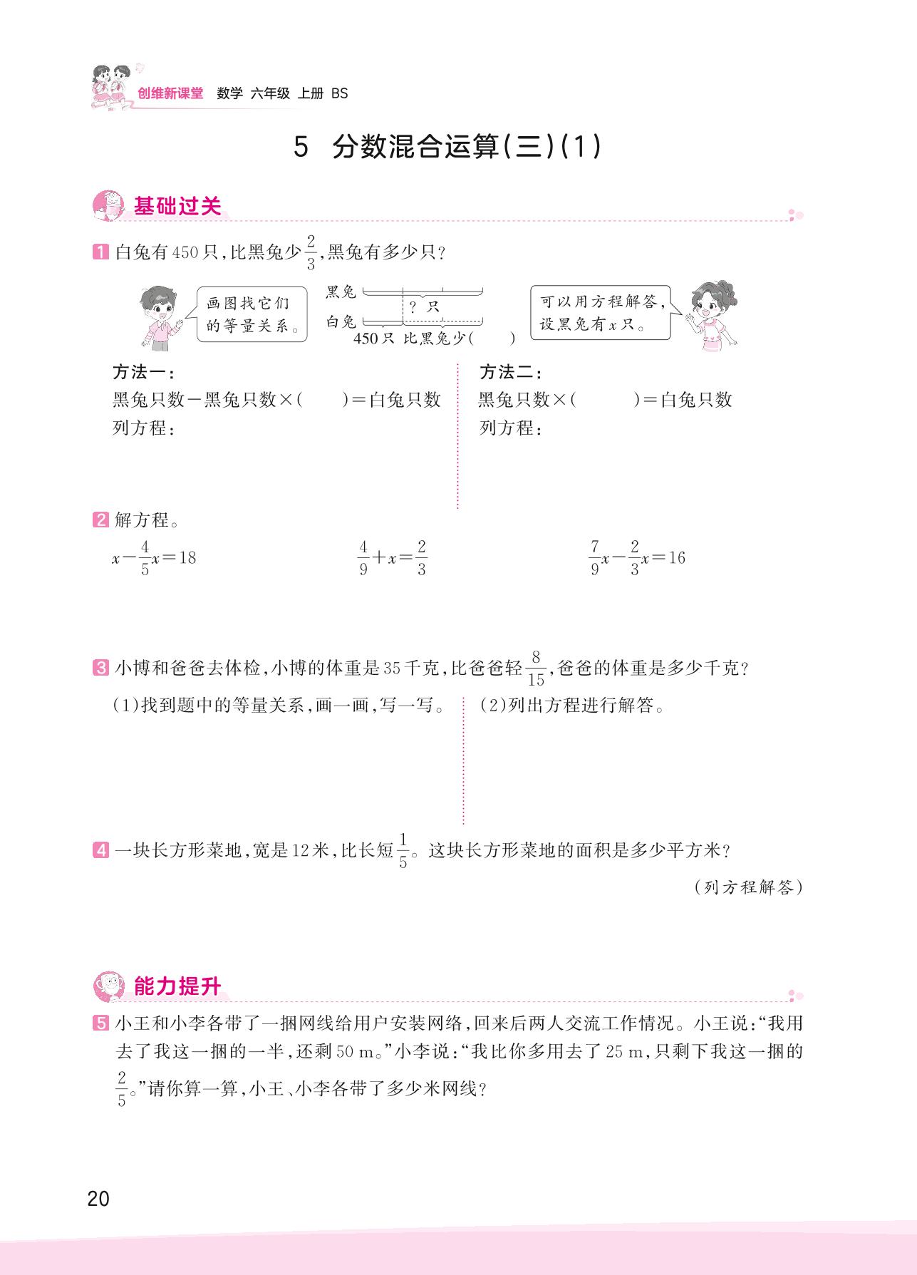 2023上册六年级数学北师版 二 分数混合运算——5 分数混合运算(三)(1)