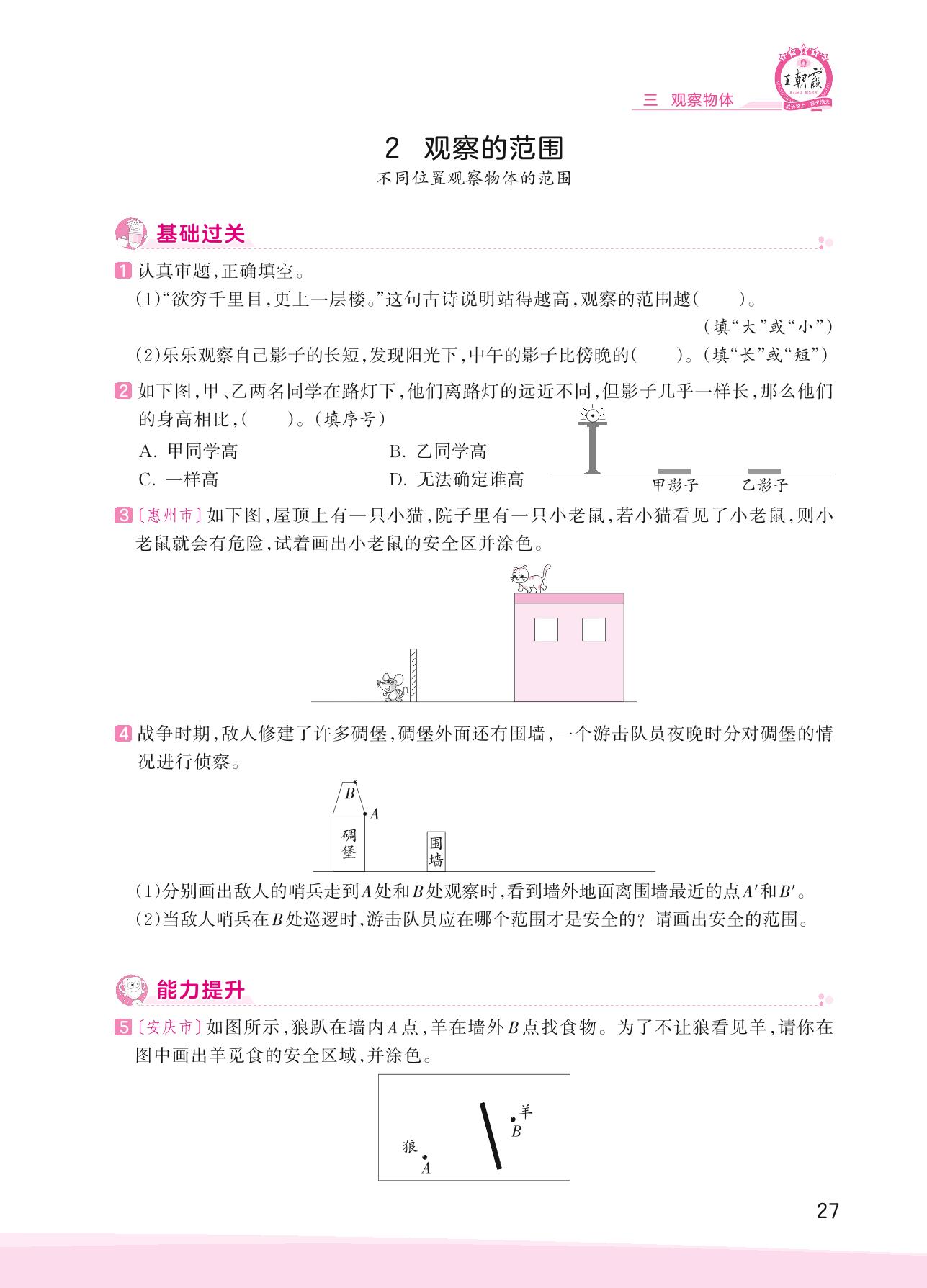 2023上册六年级数学北师版 三 观察物体——2 观察的范围