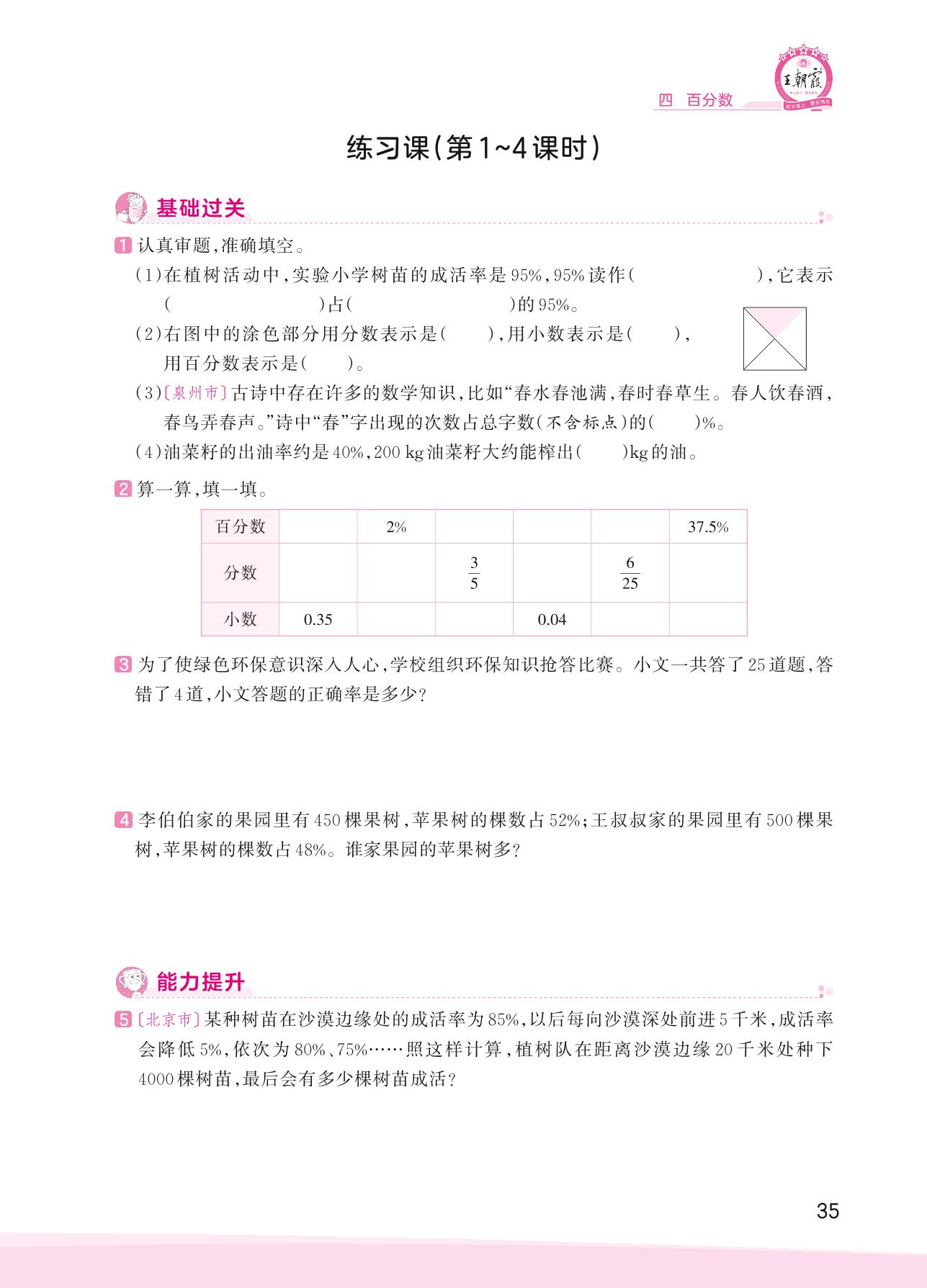 2023上册六年级数学北师版 四 百分数——练习课(第1~4课时)