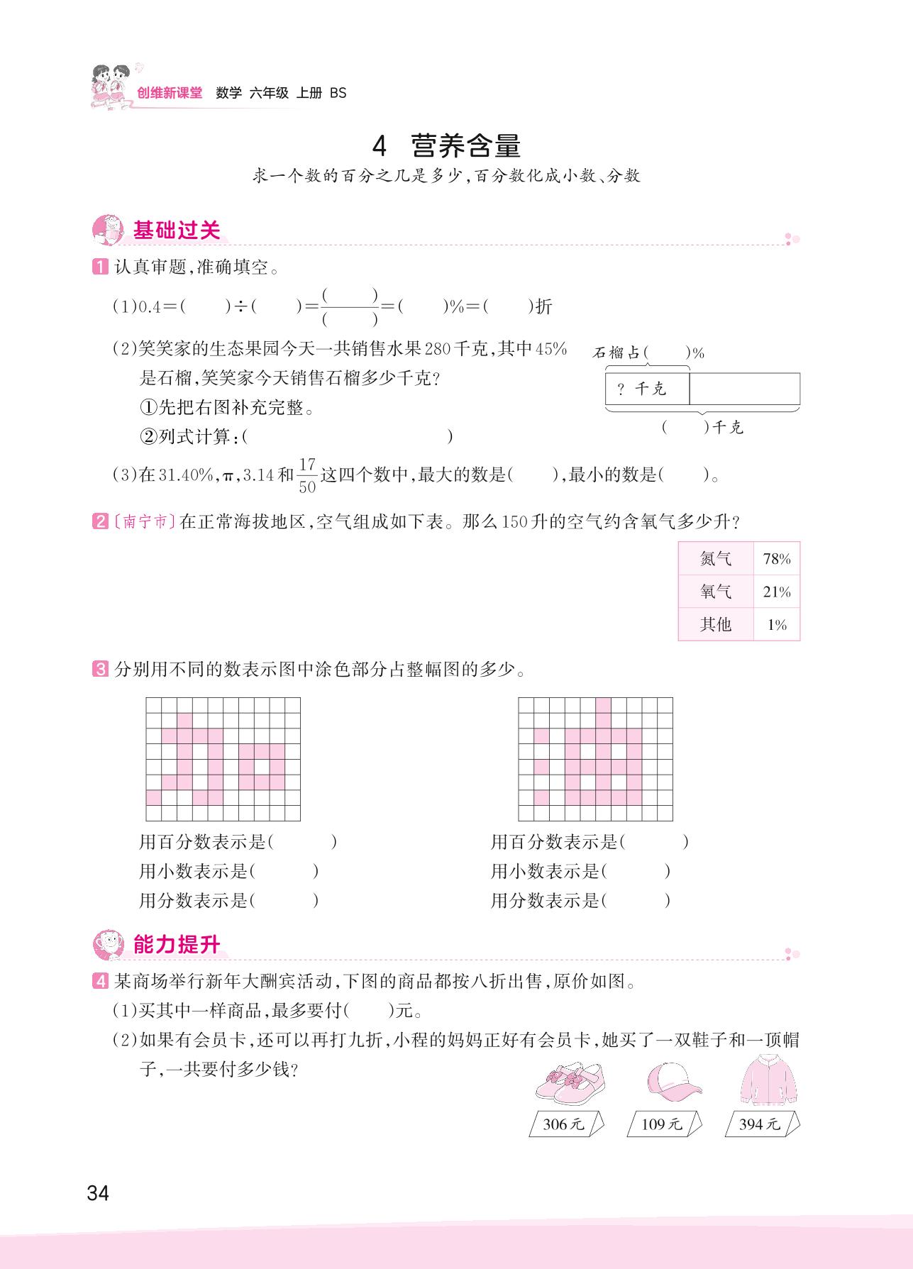 2023上册六年级数学北师版 四 百分数——4 营养含量