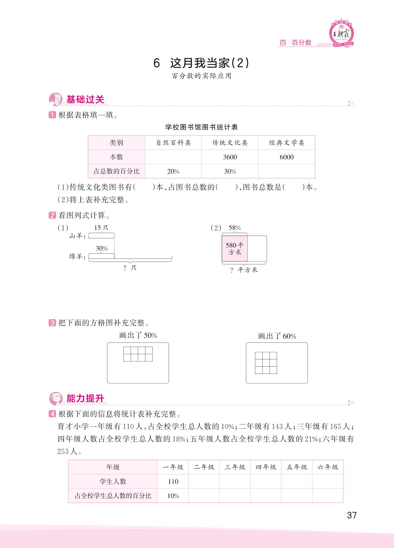 2023上册六年级数学北师版 四 百分数——6 这月我当家(2)