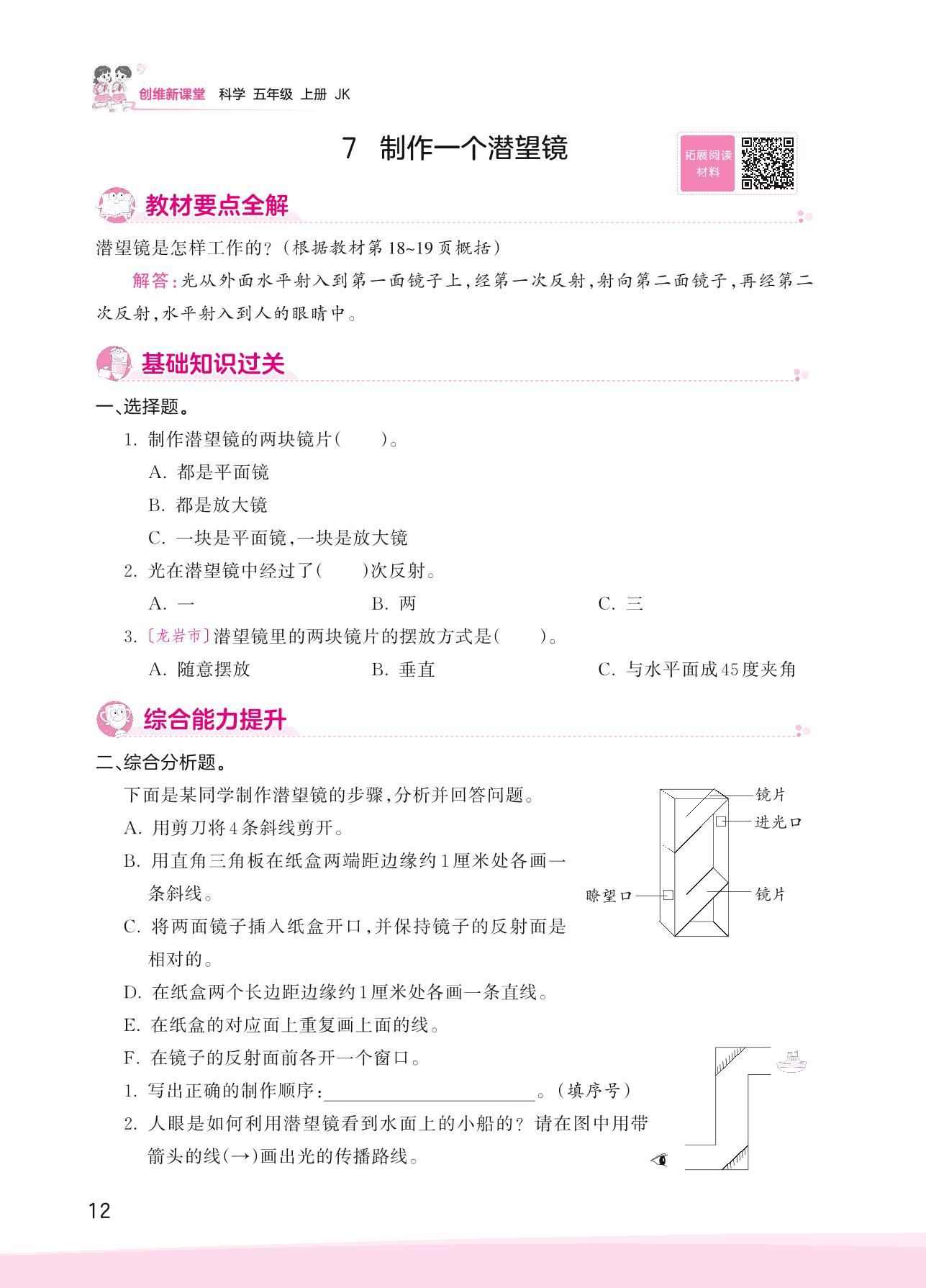 2023上册五年级科学教科版 第一单元 光——7 制作一个潜望镜