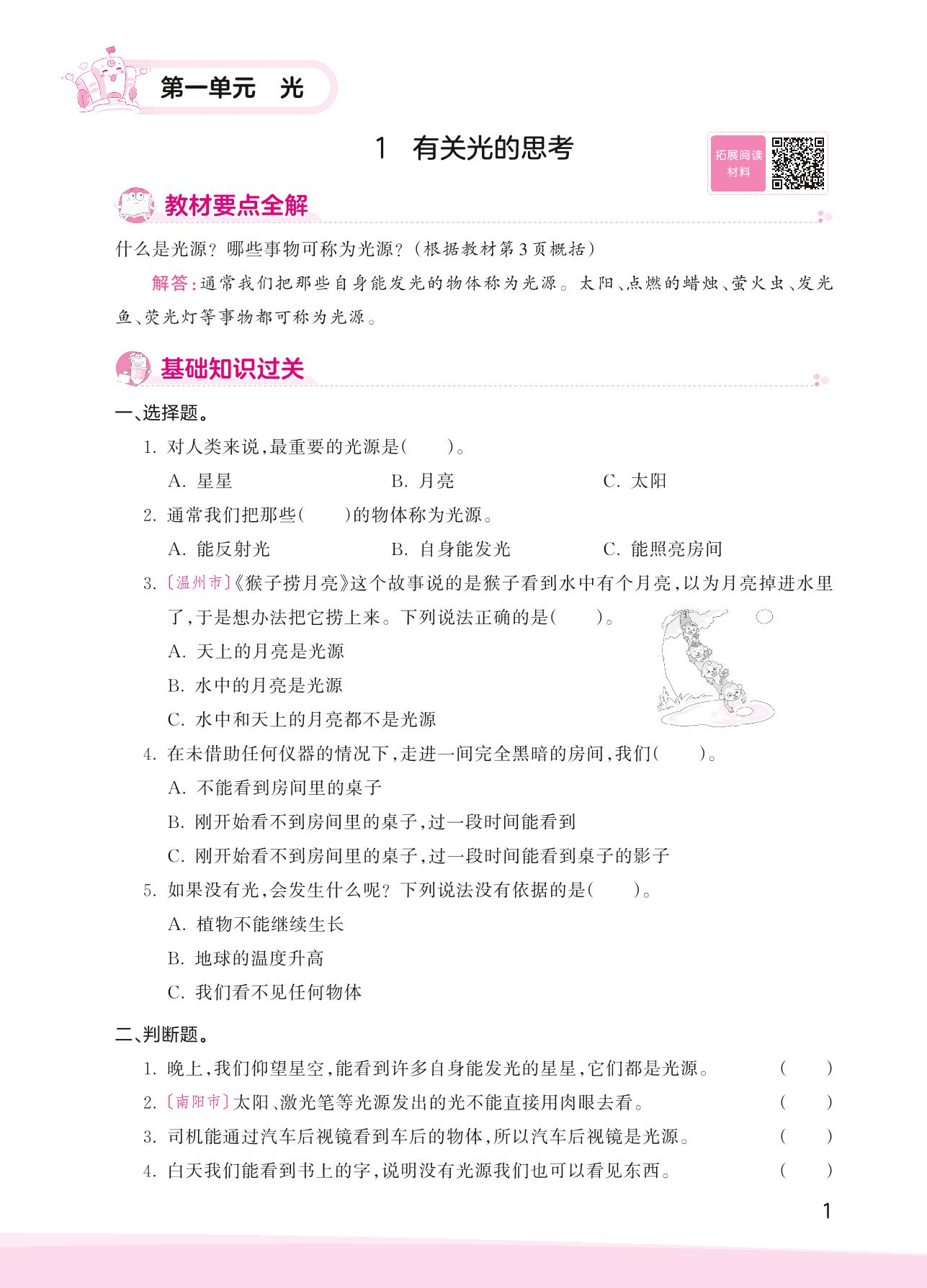 2023上册五年级科学教科版 第一单元 光——1 有关光的思考