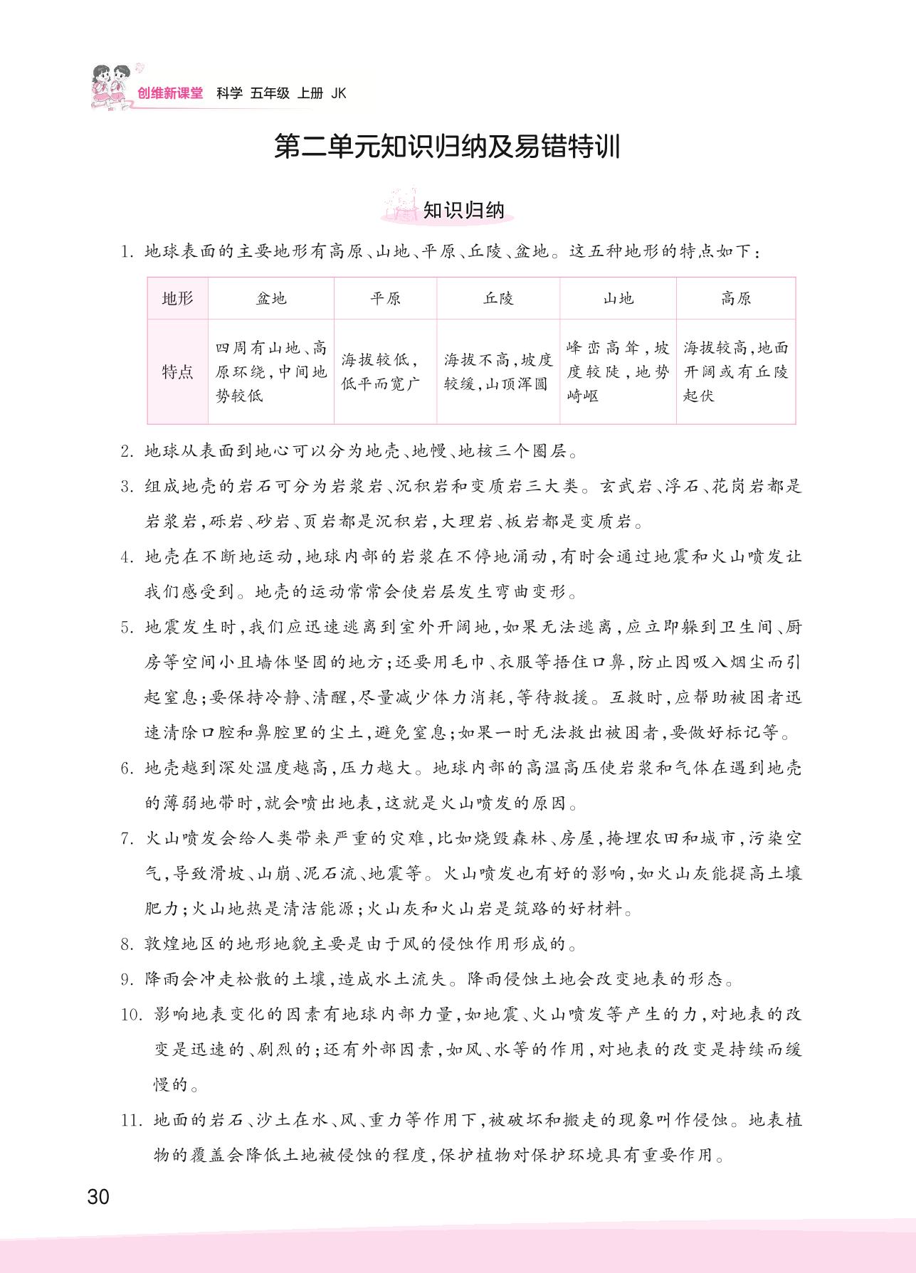 2023上册五年级科学教科版 第二单元知识归纳及易错特训