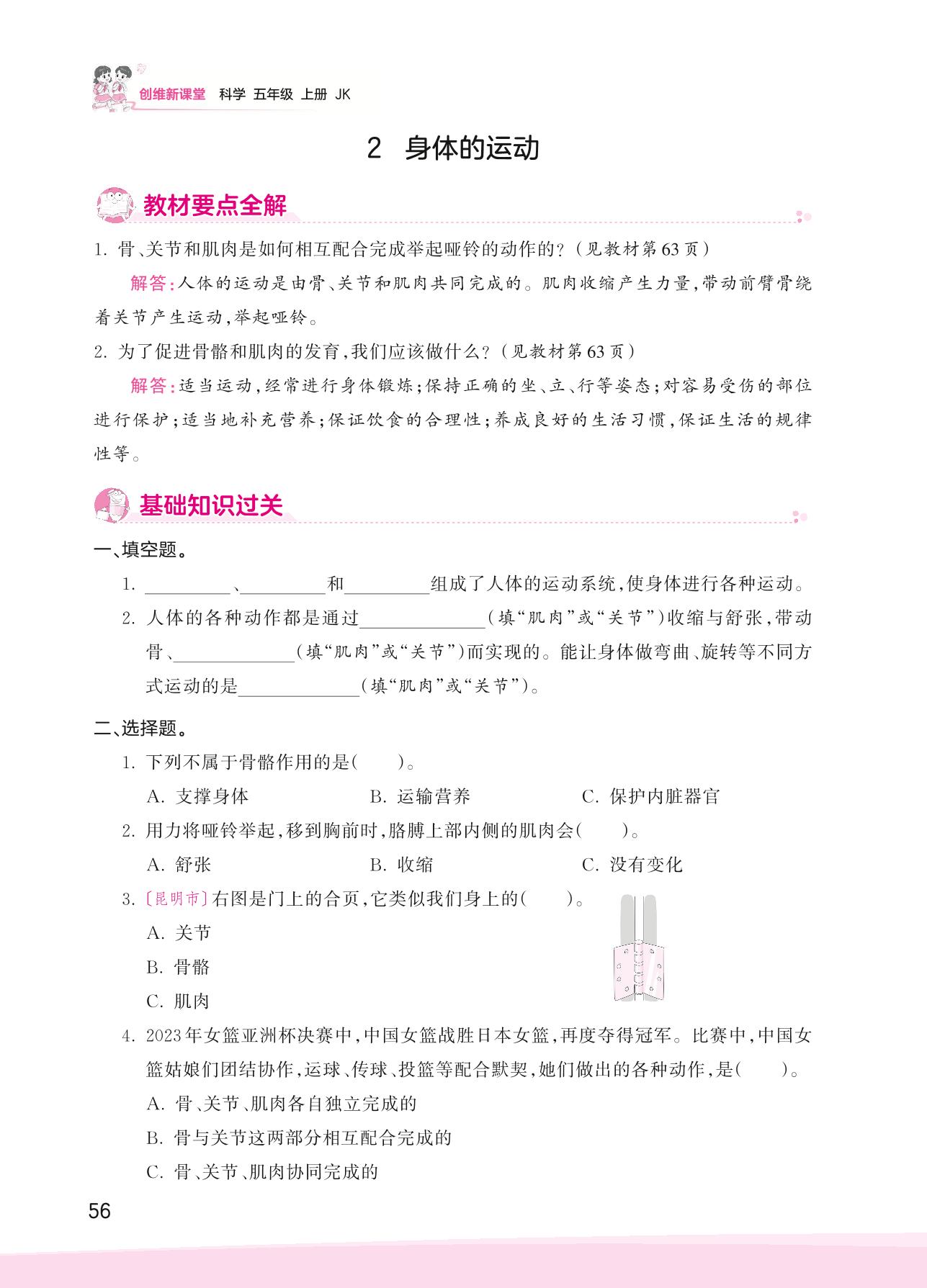 2023上册五年级科学教科版 第四单元 健康生活——2 身体的运动