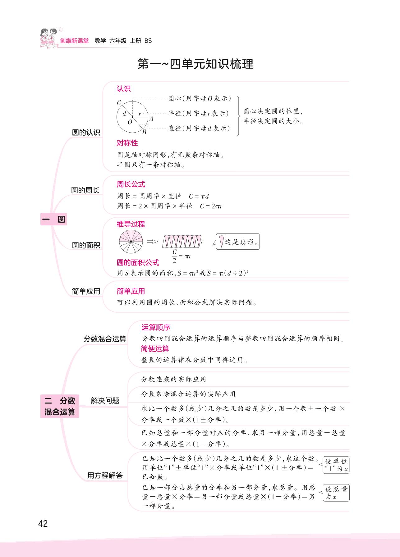 2023上册六年级数学北师版 第一~四单元知识梳理