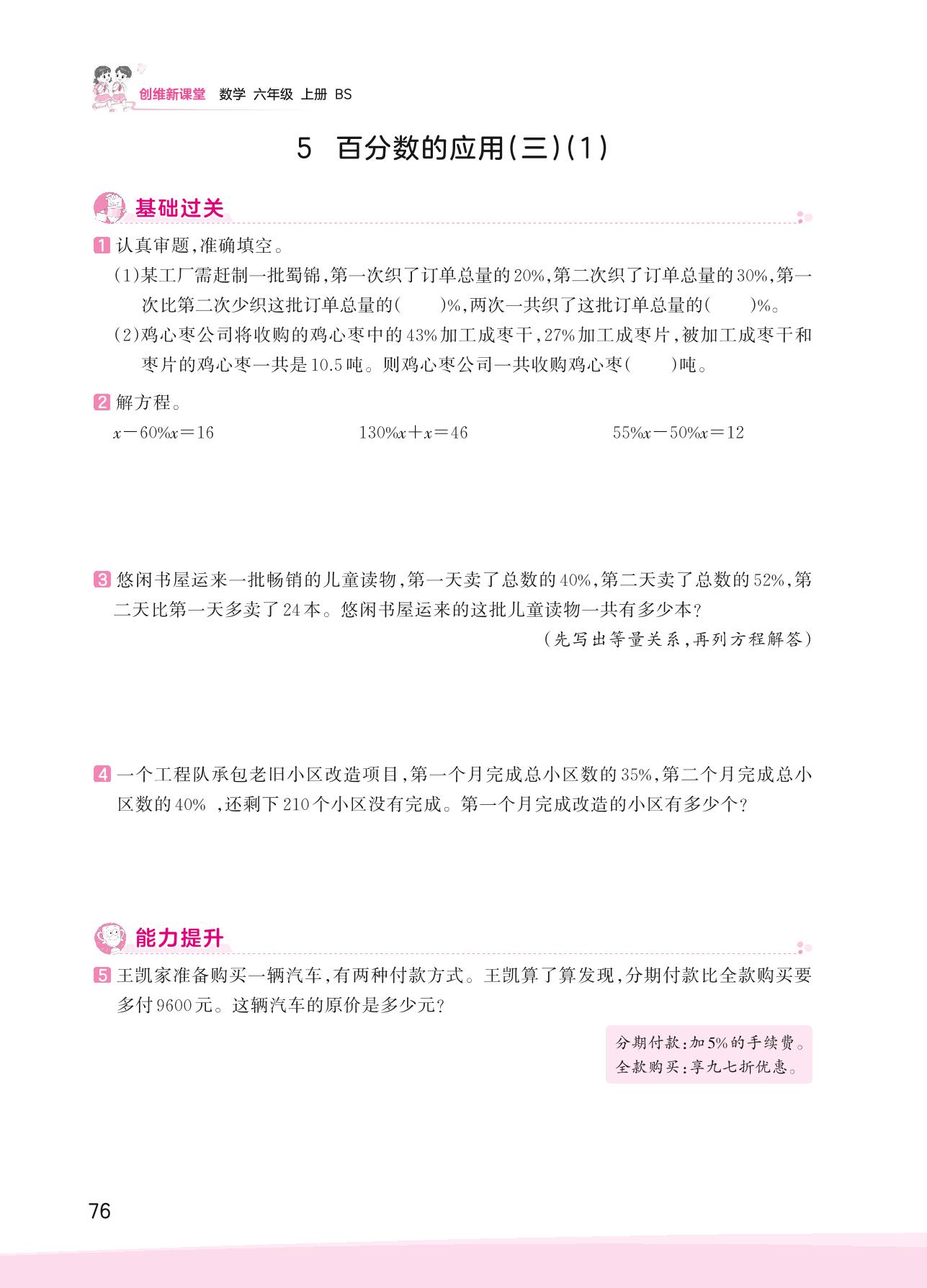 2023上册六年级数学北师版 七 百分数的应用——5 百分数的应用(三)(1)