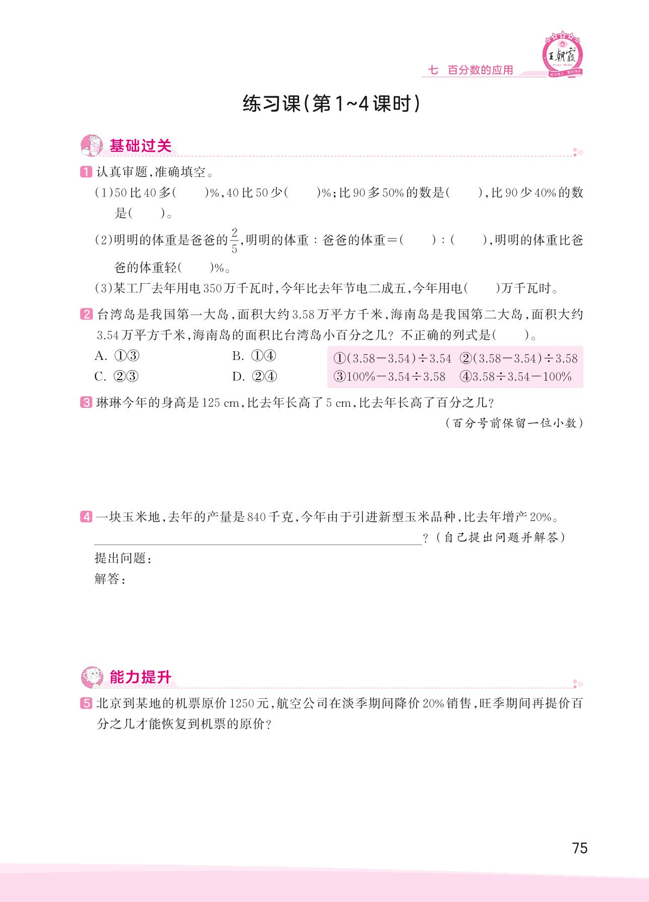 2023上册六年级数学北师版 七 百分数的应用——练习课(第1~4课时)