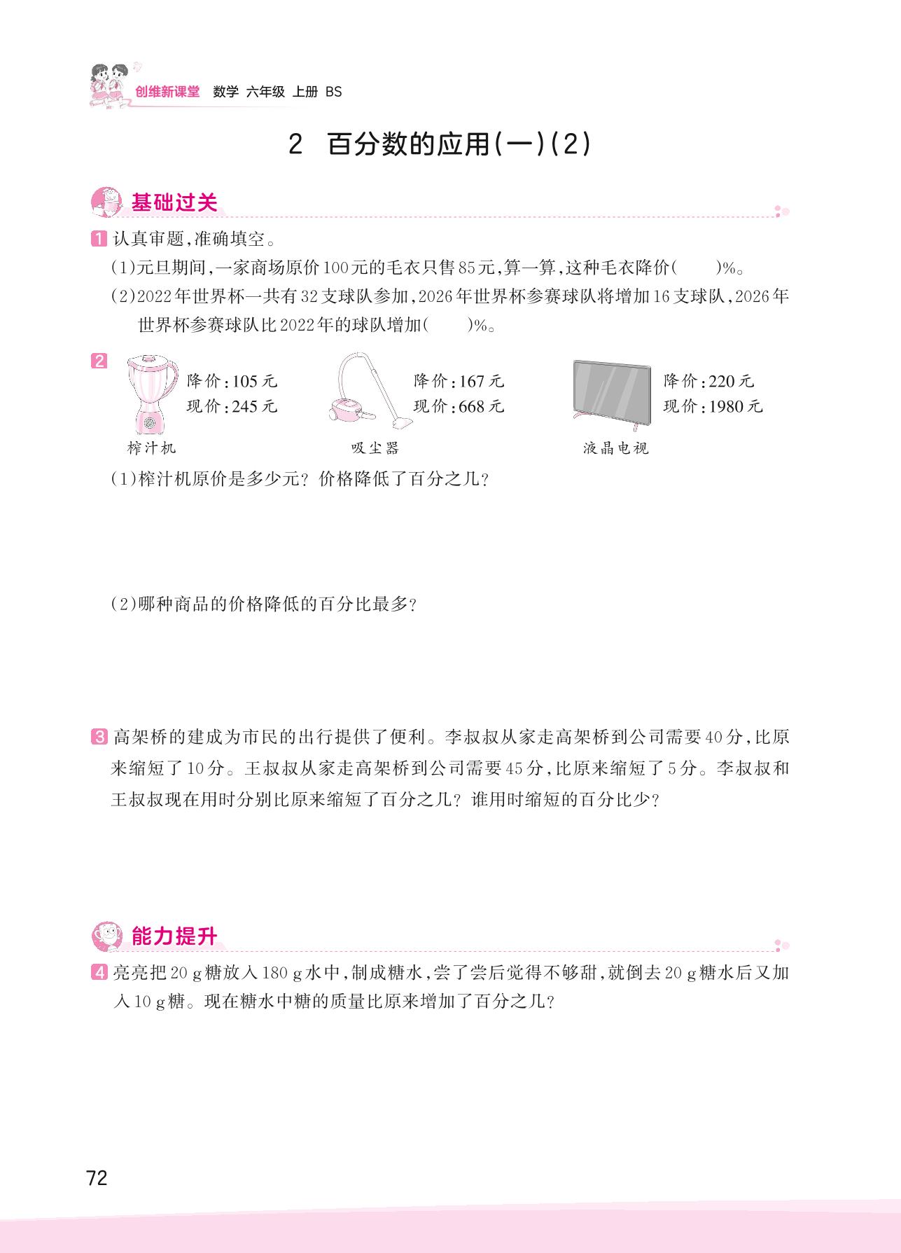 2023上册六年级数学北师版 七 百分数的应用——2 百分数的应用(一)(2)