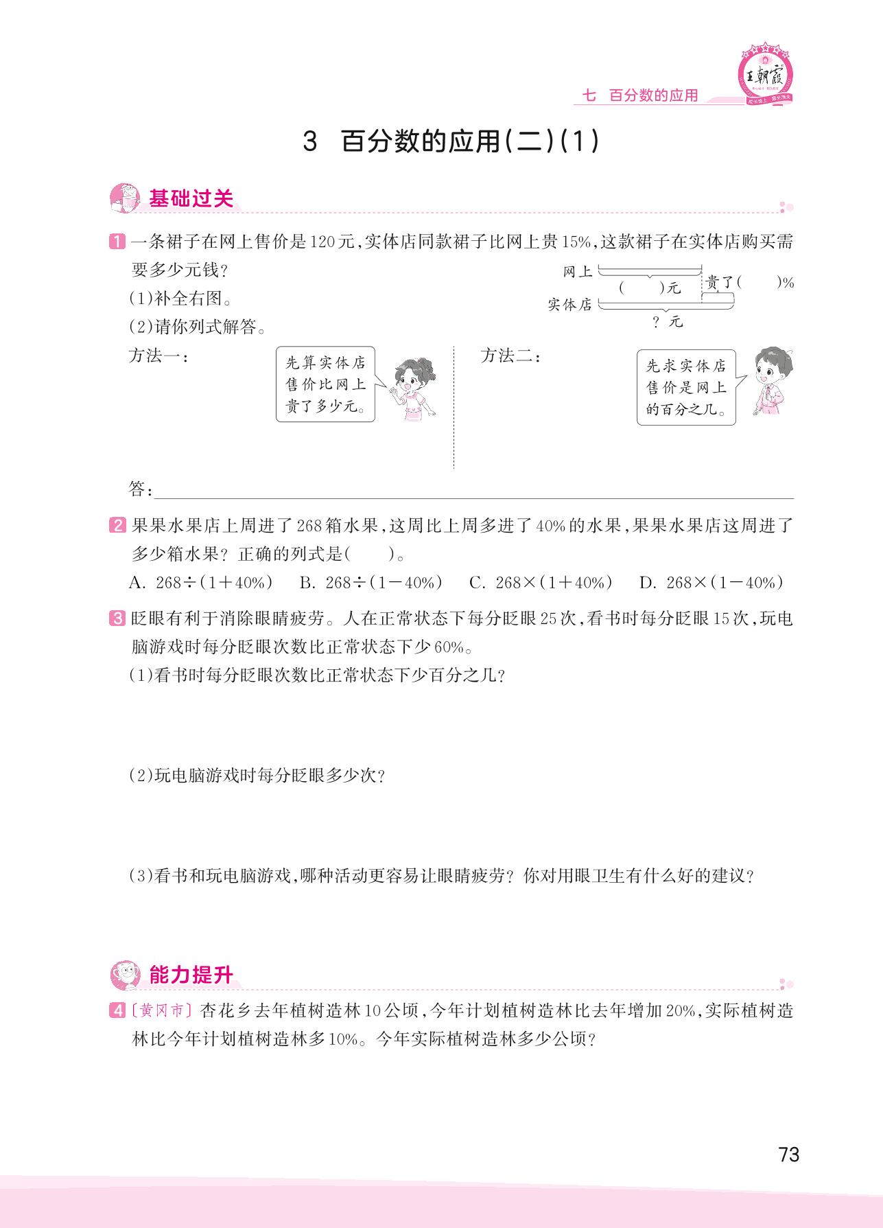 2023上册六年级数学北师版 七 百分数的应用——3 百分数的应用(二)(1)