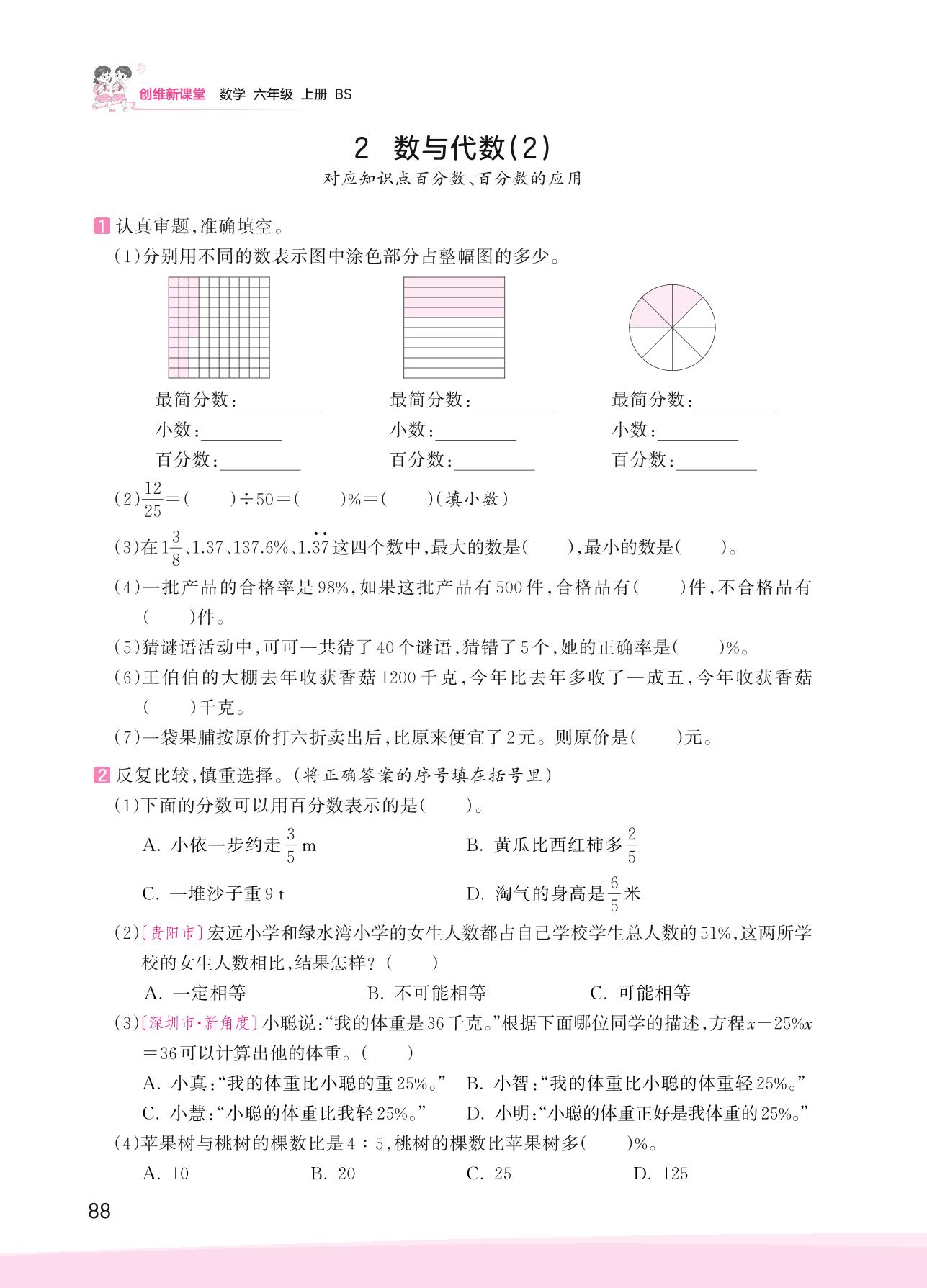 2023上册六年级数学北师版 总复习——2 数与代数(2)