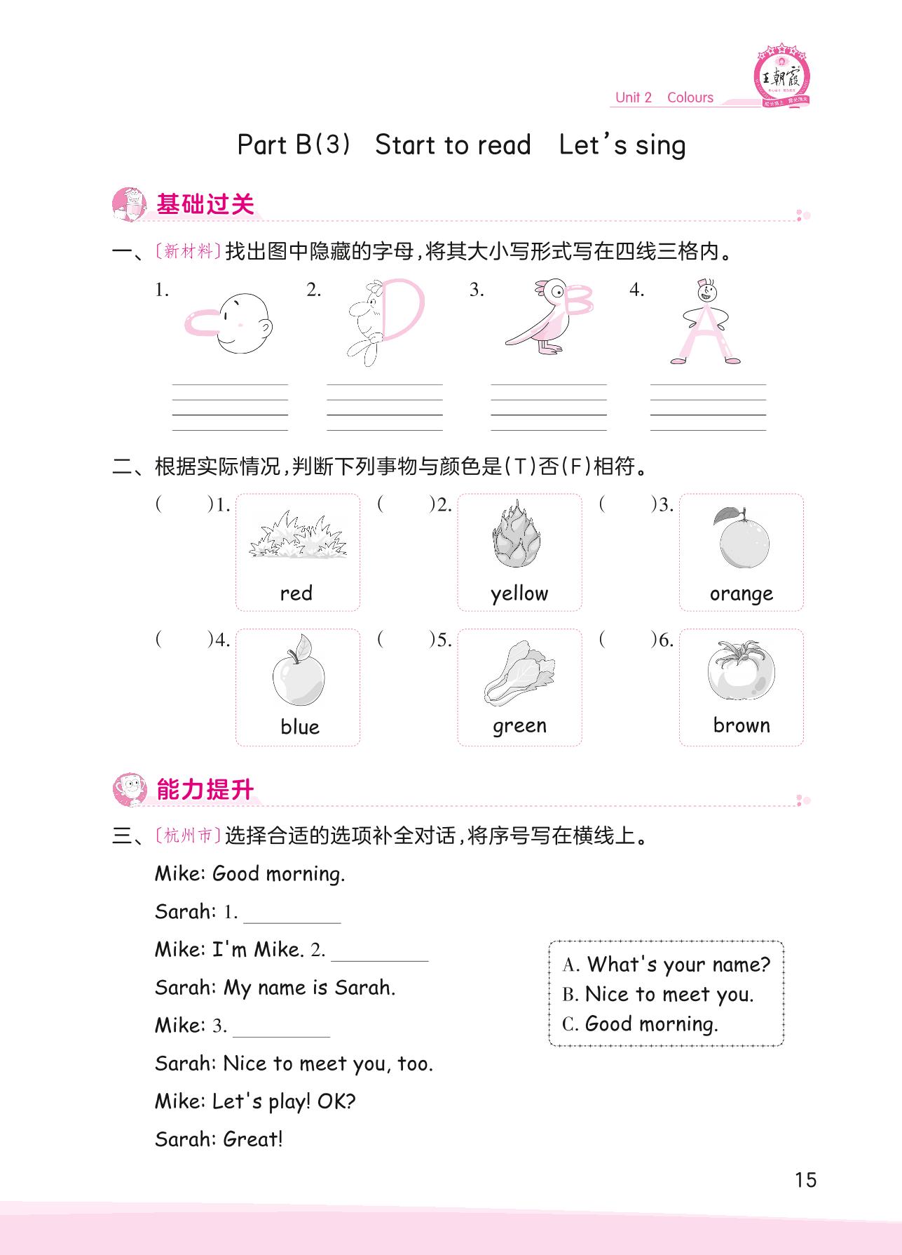 2023上册三年级英语人教PEP版 Unit 2—Part B(3) Start to read Let’s sing