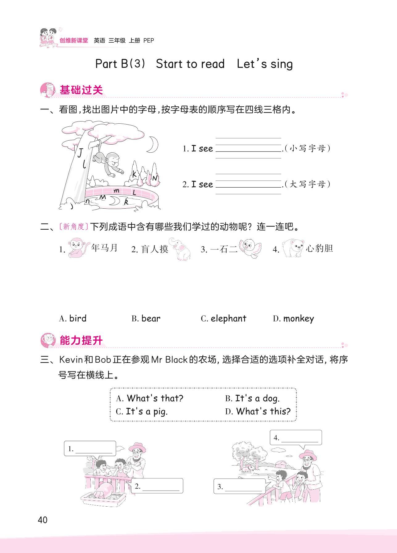 2023上册三年级英语人教PEP版 Unit 4—Part B(3) Start to read Let’s sing