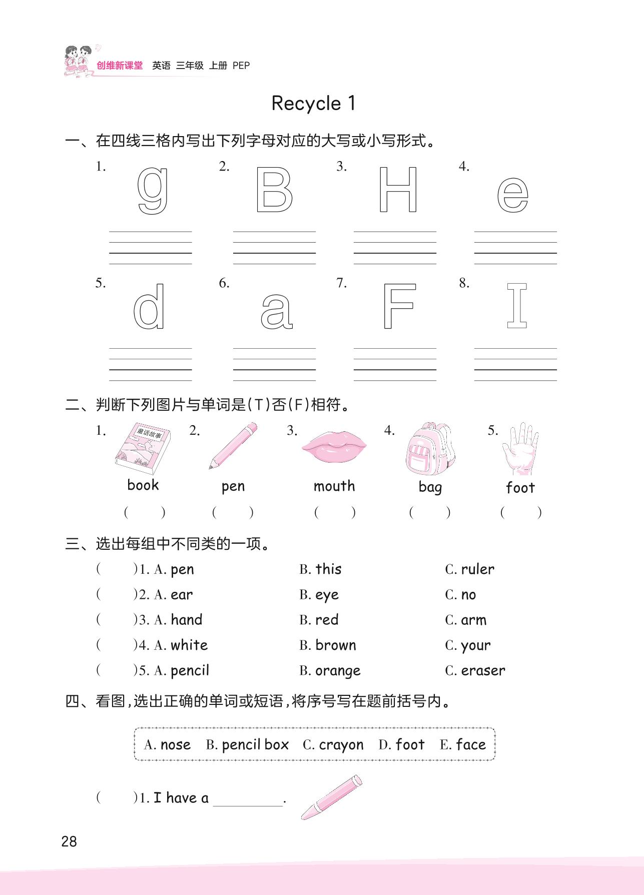 2023上册三年级英语人教PEP版 Recycle 1