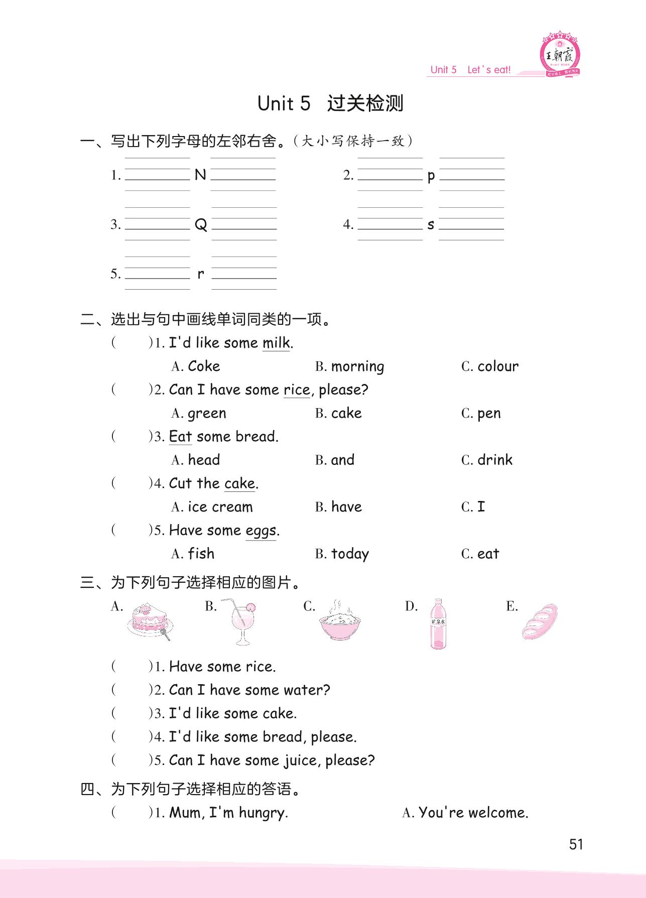 2023上册三年级英语人教PEP版 Unit 5 过关检测