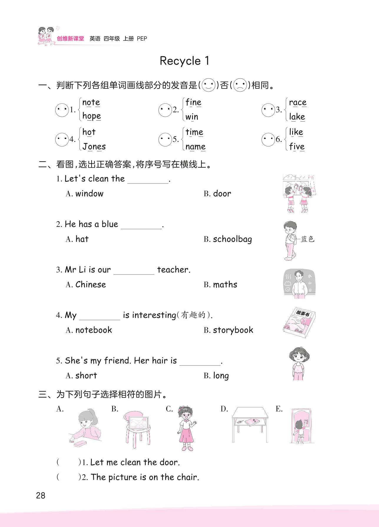 2023上册四年级英语人教PEP版 2023上册四年级英语人教PEP版 Recycle 1