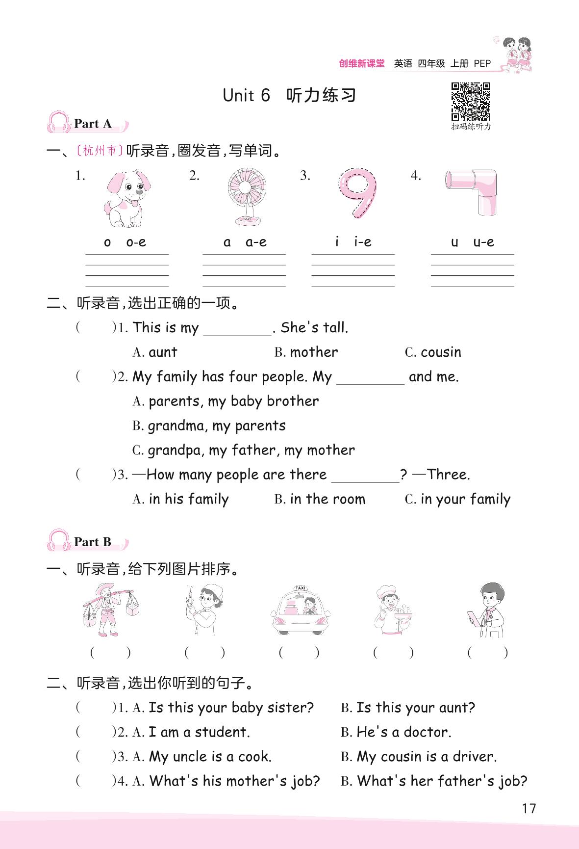2023上册四年级英语人教PEP版 Unit 6 Meet my family!—Part A、Part B 听力练习