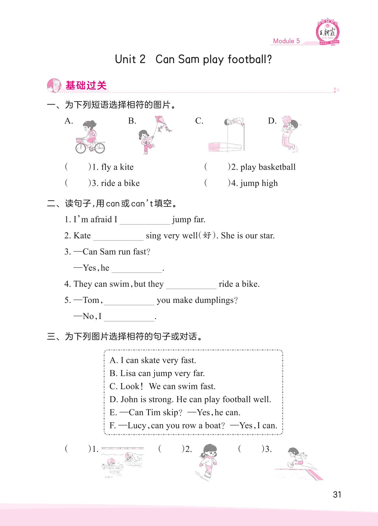 2023上册四年级英语外研版 Module 5—Unit 2 Can Sam play football?