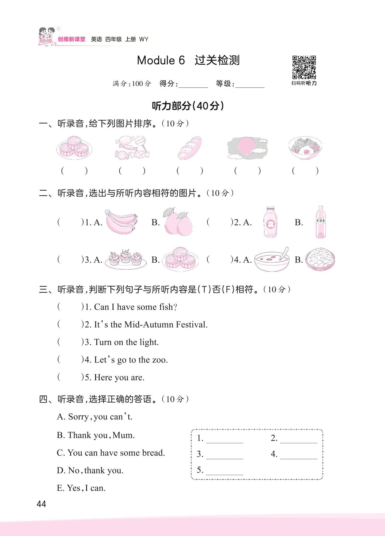 2023上册四年级英语外研版 Module 6 过关检测