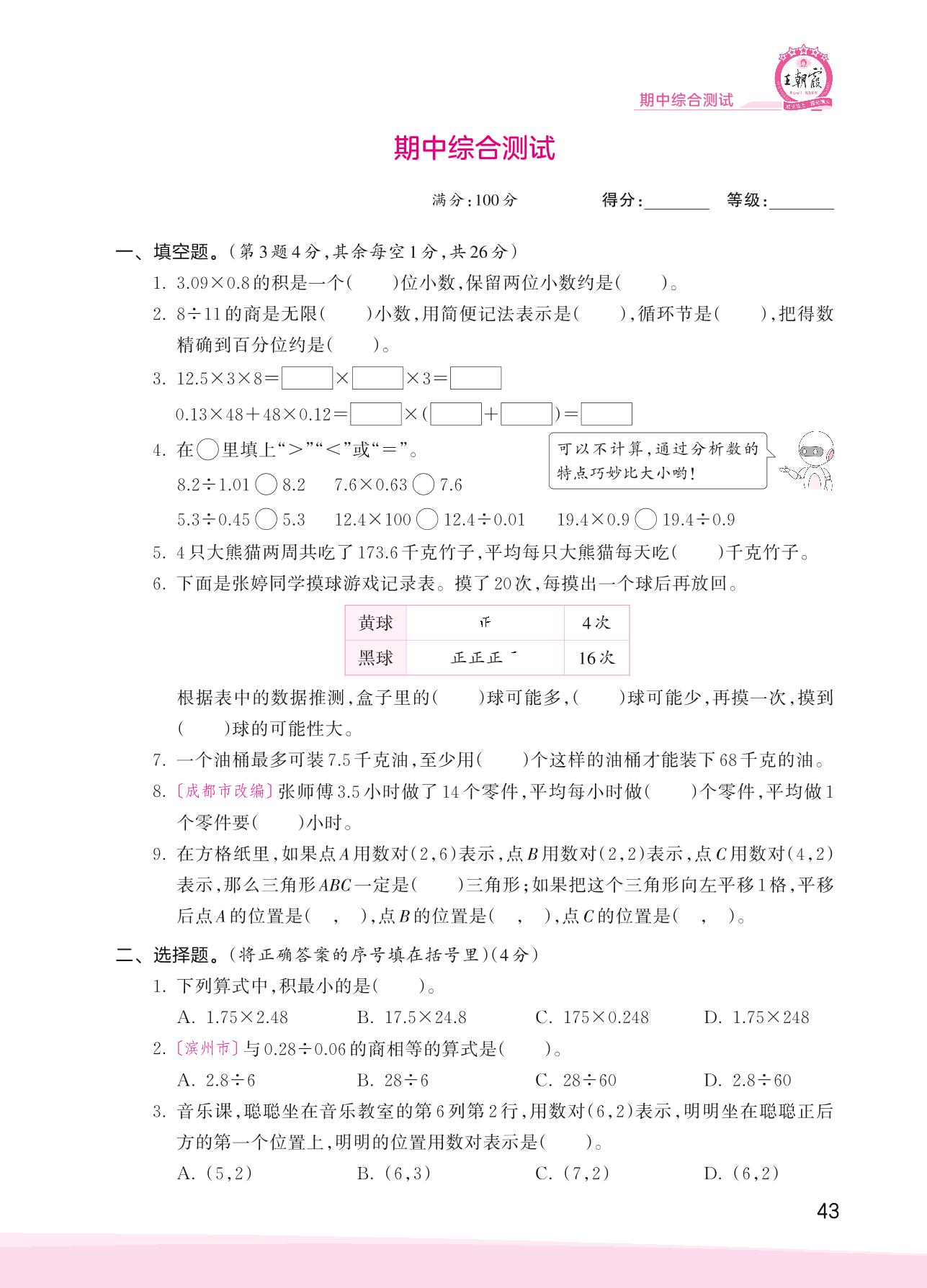 五年级数学人教版上册期中卷
