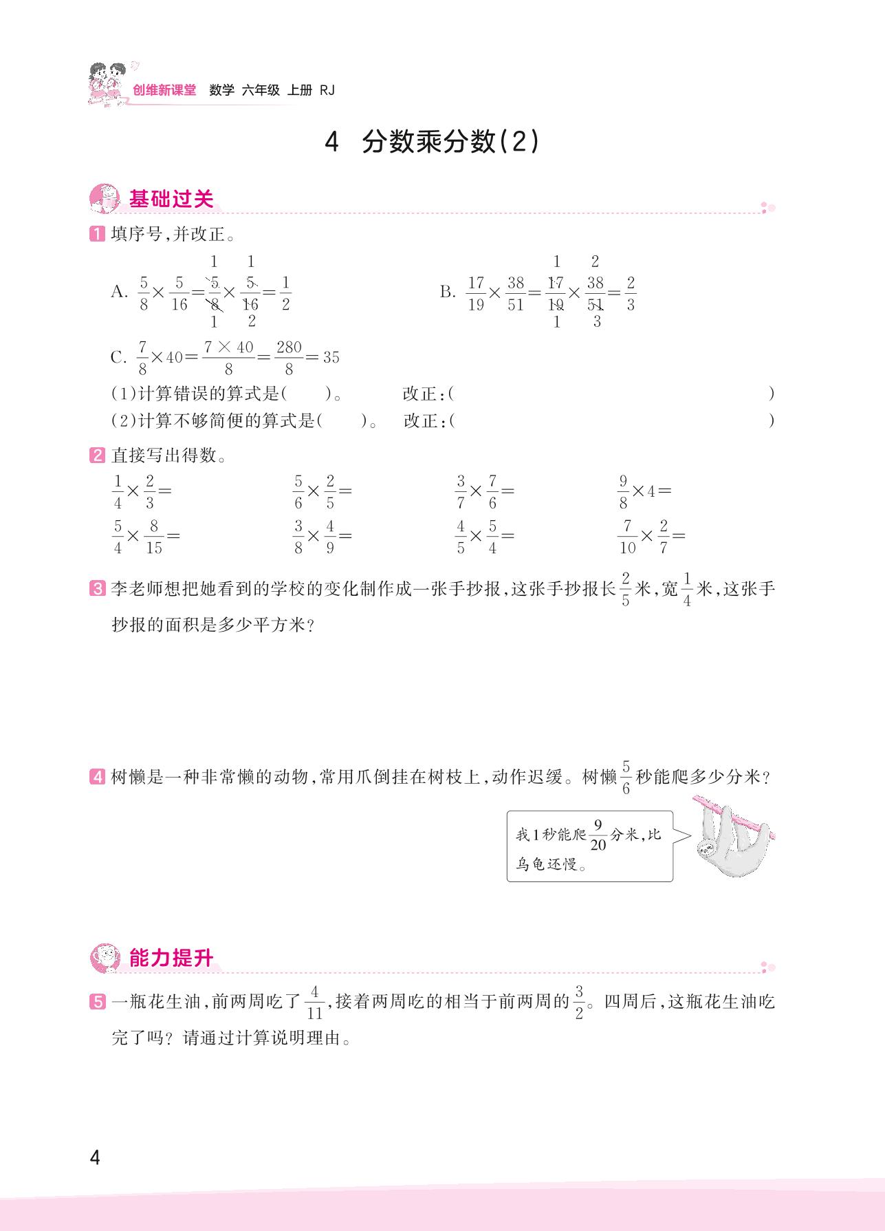 2023上册六年级数学人教版 一 分数乘法——4 分数乘分数(2)