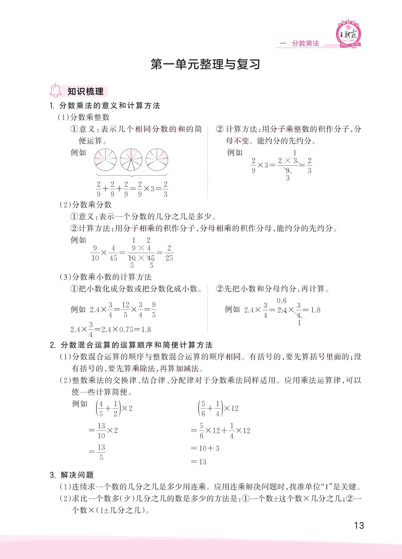 2023上册六年级数学人教版 第一单元整理与复习