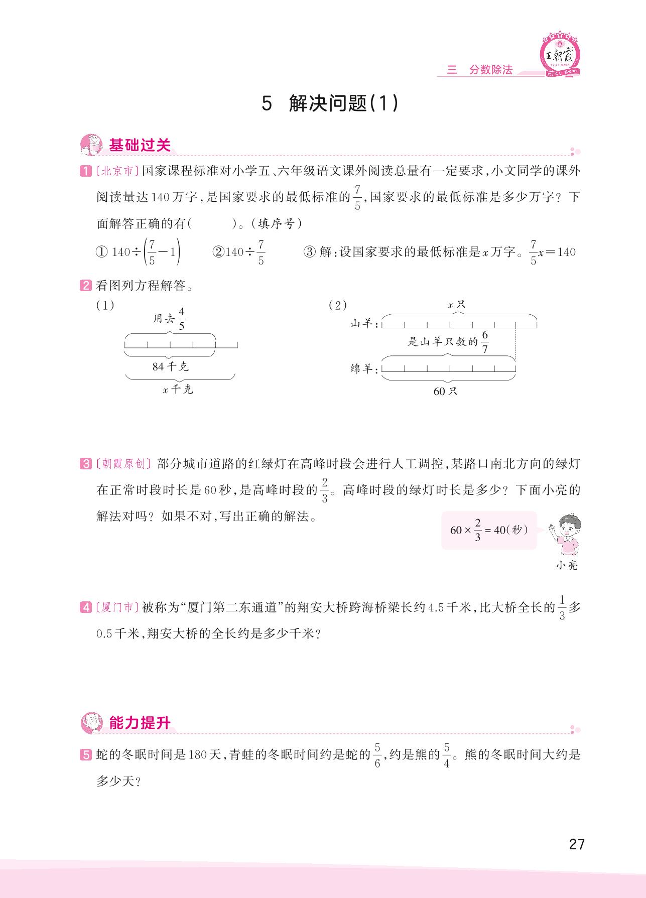 2023上册六年级数学人教版 三 分数除法——5 解决问题(1)
