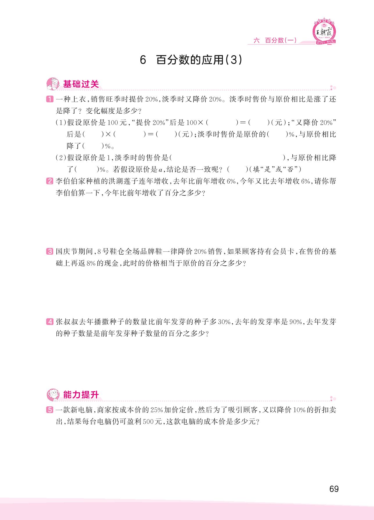 2023上册六年级数学人教版 六 百分数(一)——6 百分数的应用(3)