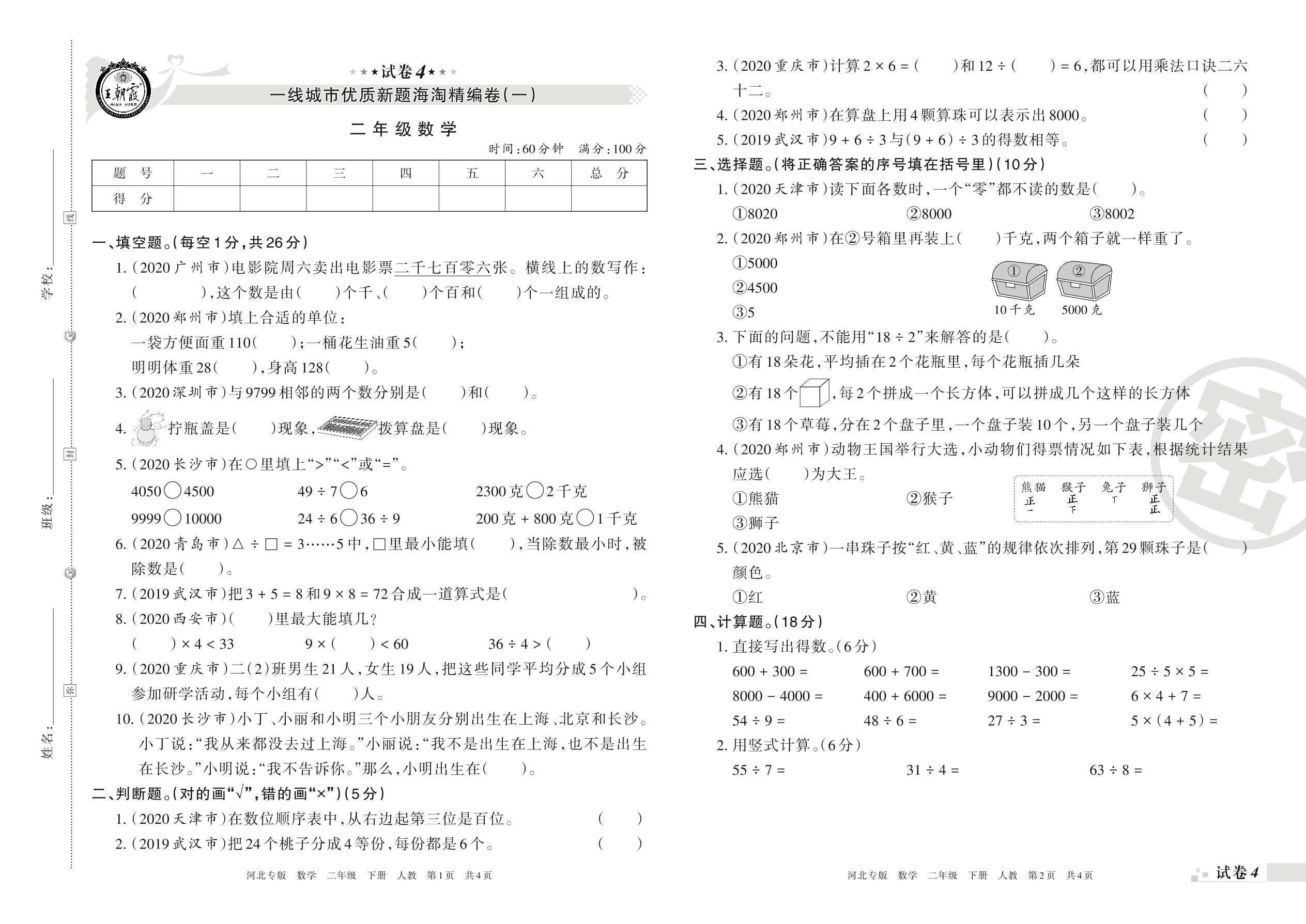 王朝霞海淘期末精编卷二年级下册数学(人教版)_R21080383048【4】