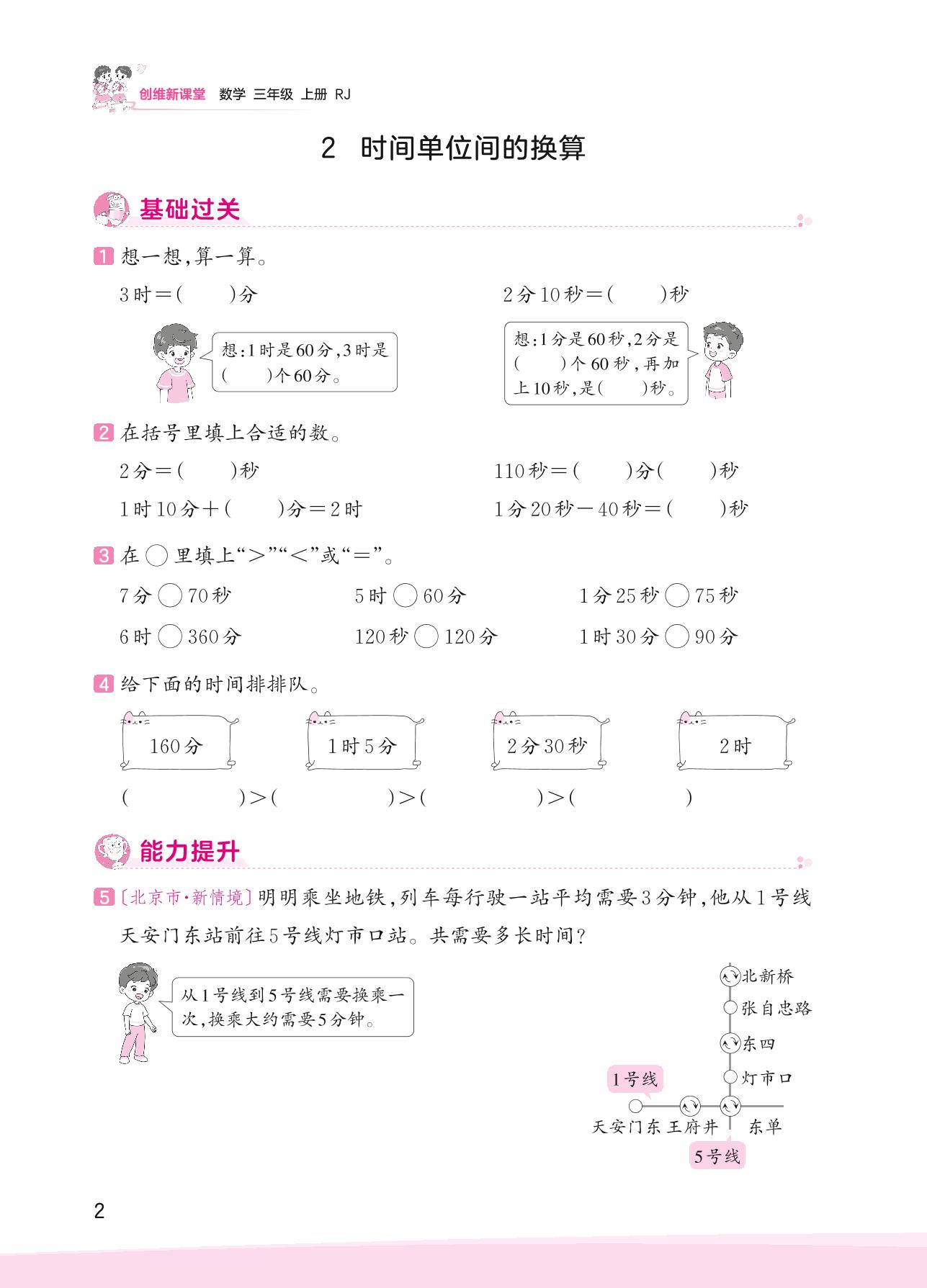 2023上册三年级数学人教版 一 时、分、秒——2 时间单位间的换算