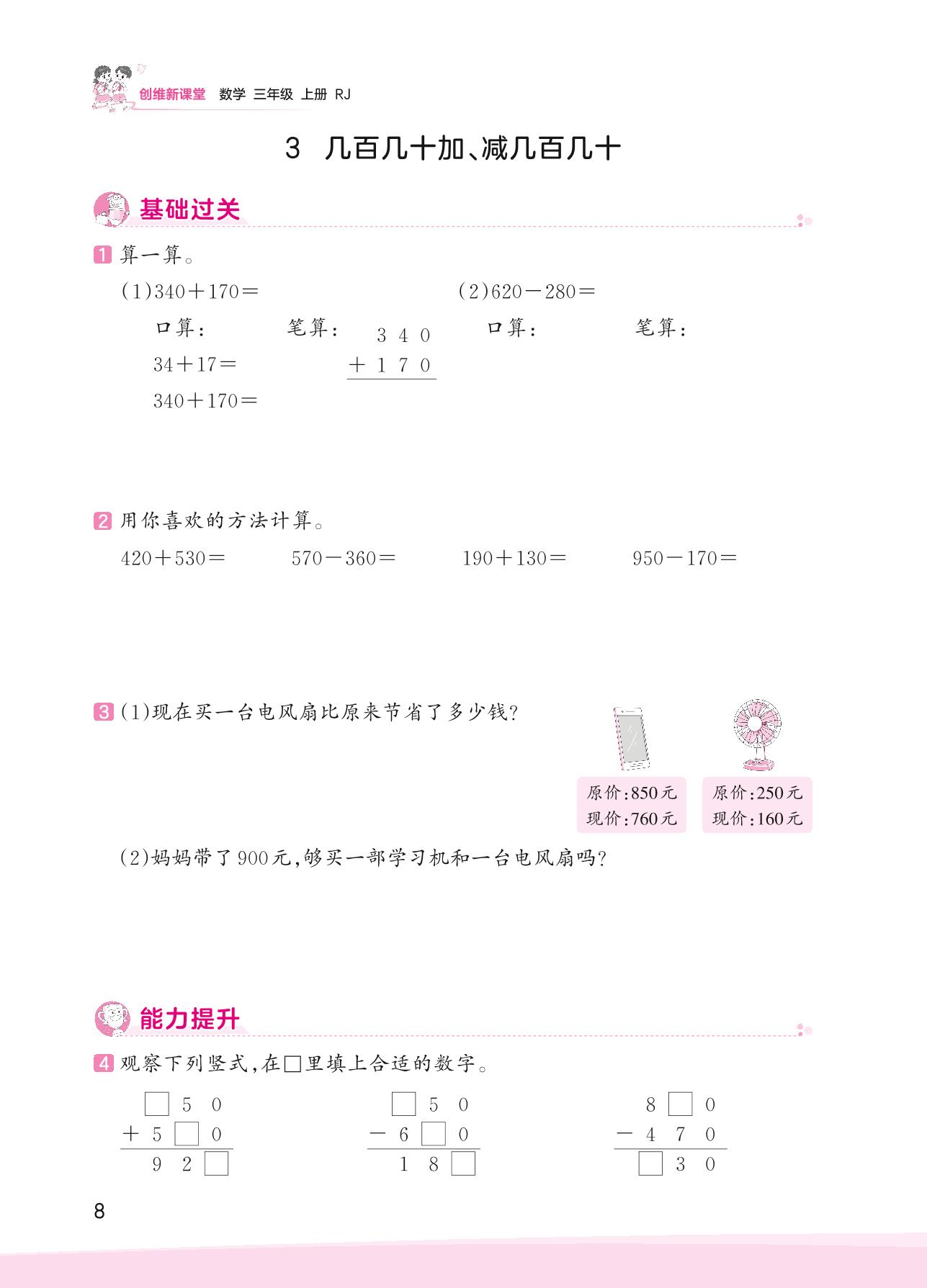 2023上册三年级数学人教版 二 万以内的加法和减法(一) ——3 几百几十加、减几百几十
