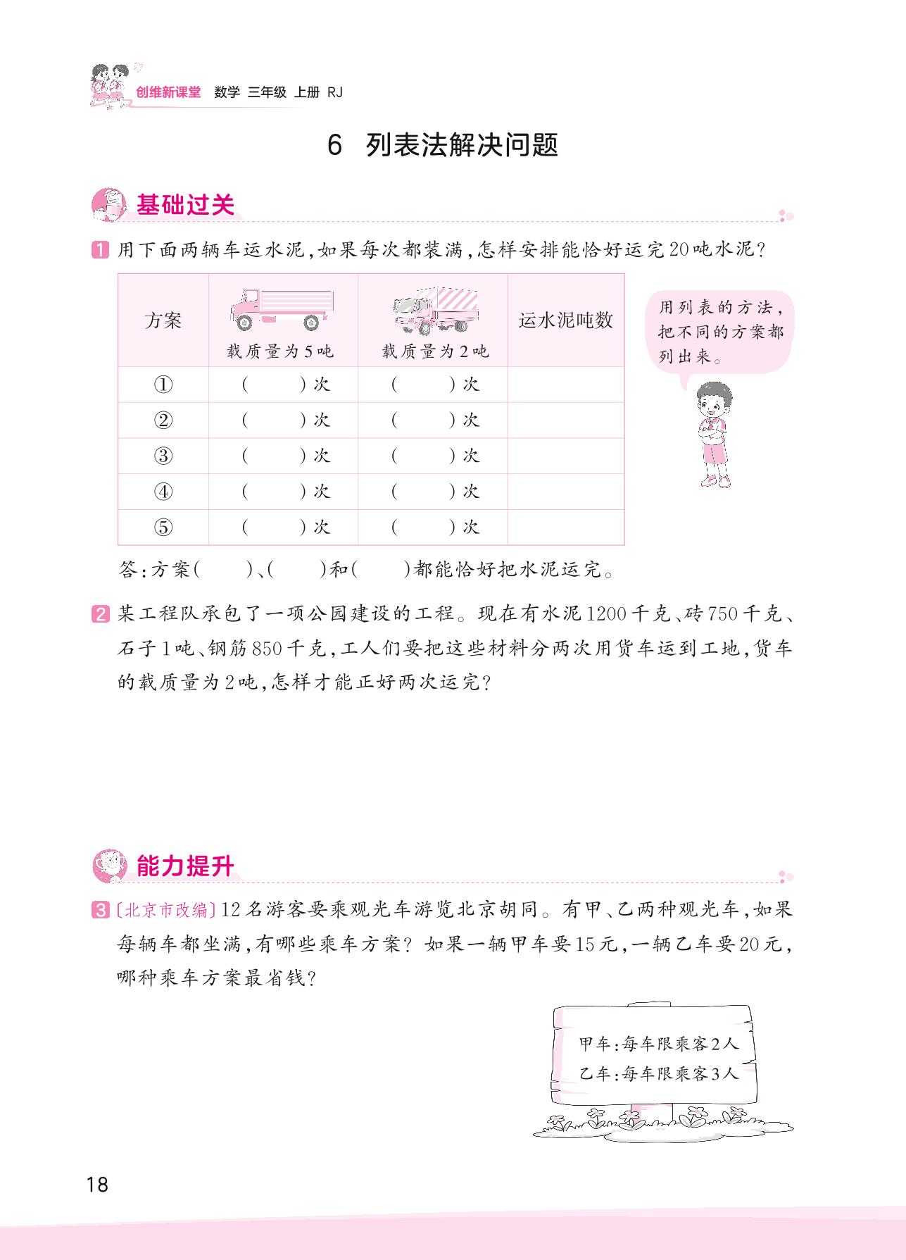 2023上册三年级数学人教版 三 测量——6 列表法解决问题