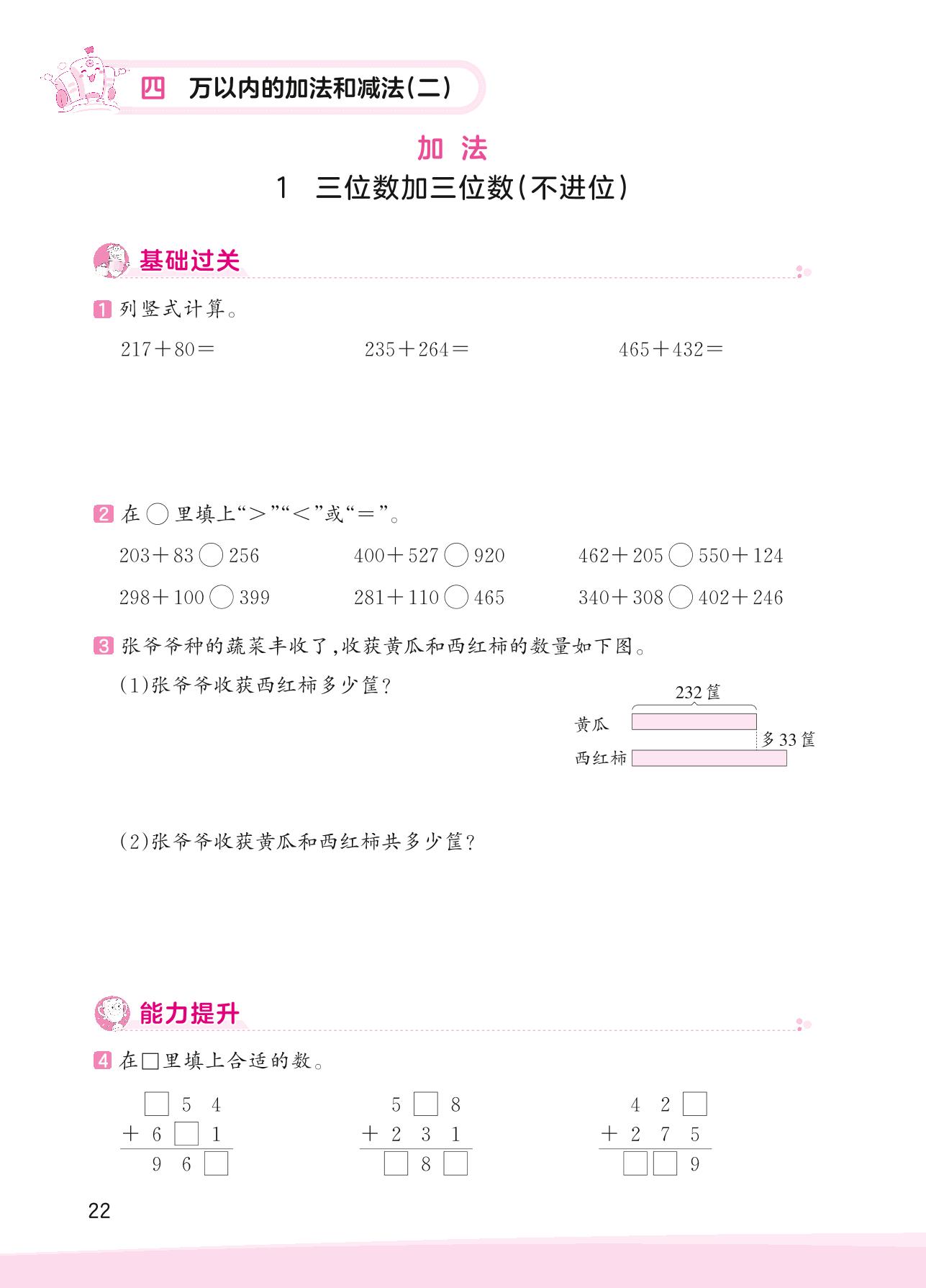 2023上册三年级数学人教版 四 万以内的加法和减法(二)——1 三位数加三位数(不进位)