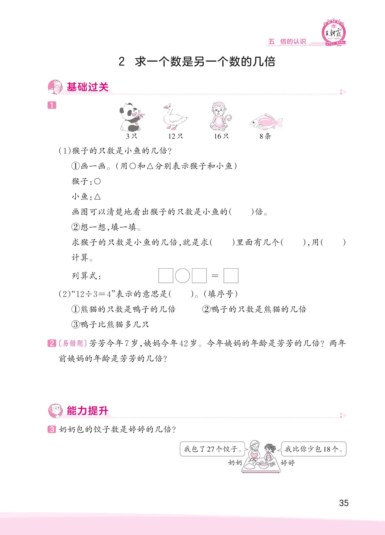 2023上册三年级数学人教版 五 倍的认识——2 求一个数是另一个数的几倍