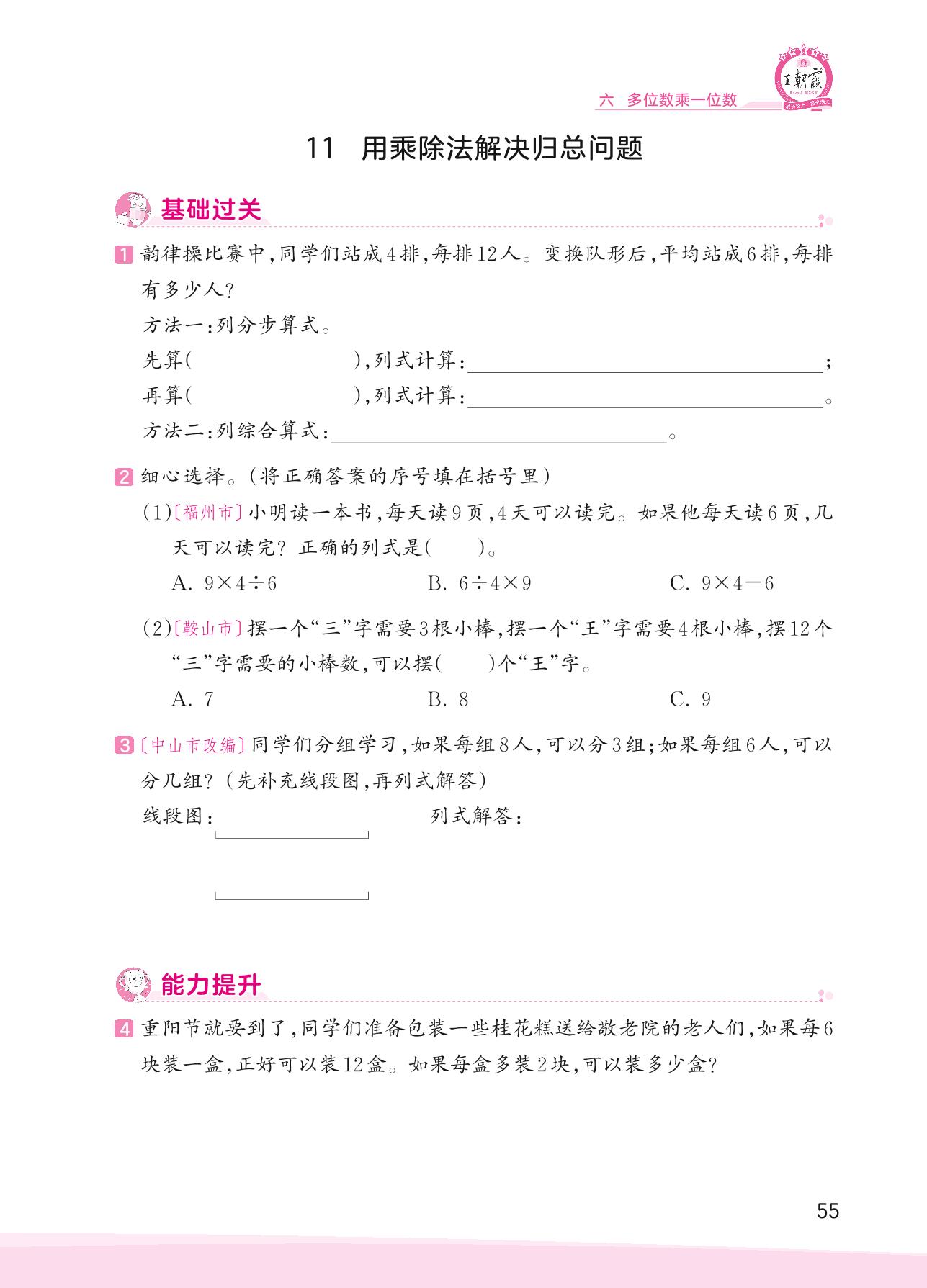 2023上册三年级数学人教版 六 多位数乘一位数——11 用乘除法解决归总问题