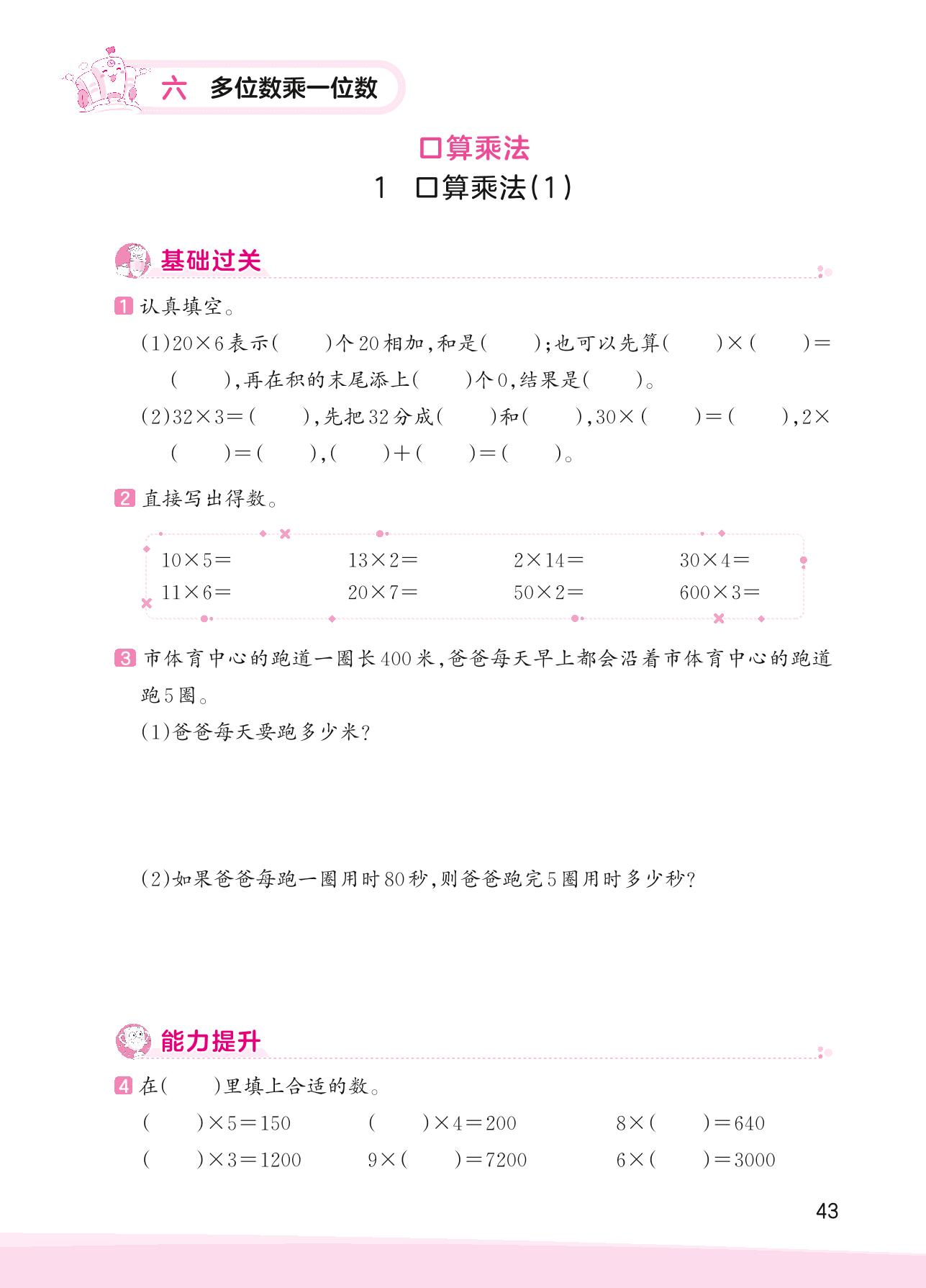 2023上册三年级数学人教版 六 多位数乘一位数——1 口算乘法(1)