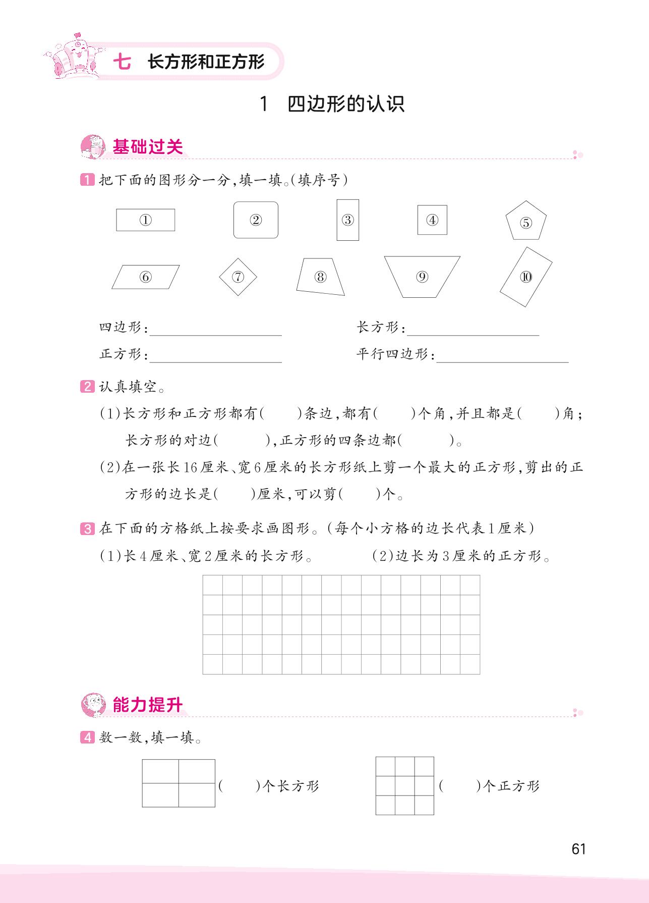 2023上册三年级数学人教版 七 长方形和正方形——1 四边形的认识