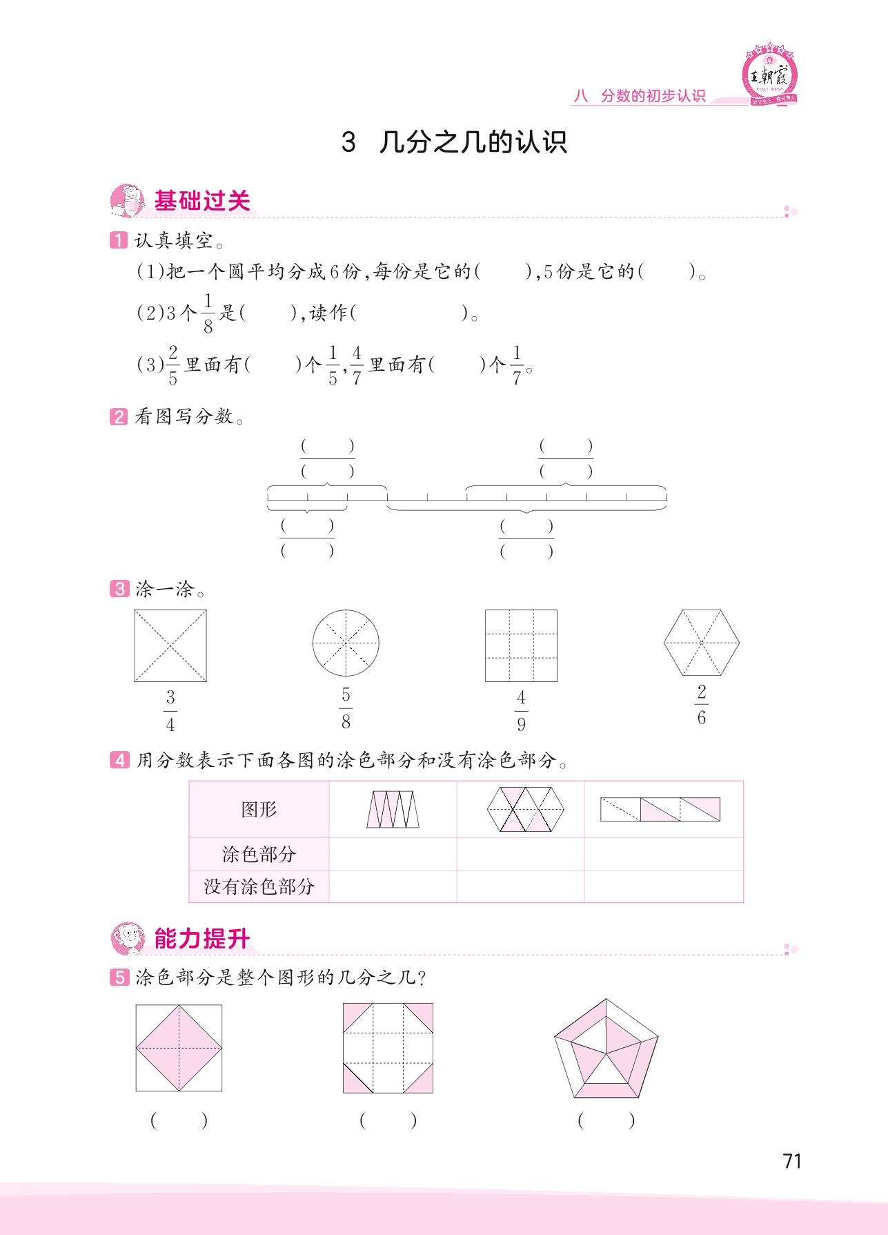 2023上册三年级数学人教版 八 分数的初步认识——3 几分之几的认识