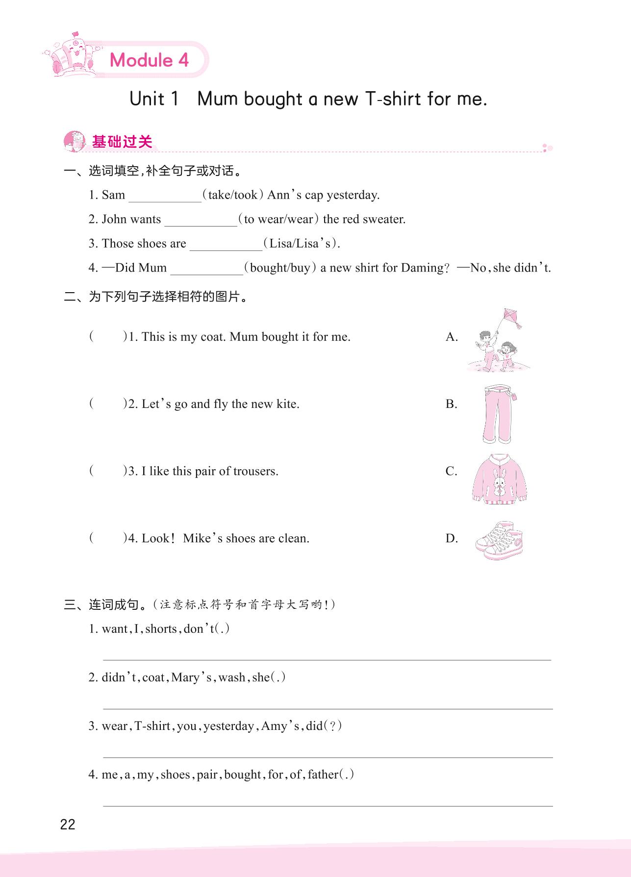 2023上册五年级英语外研版 Module 4—Unit 1 Mum bought a new T-shirt for me.